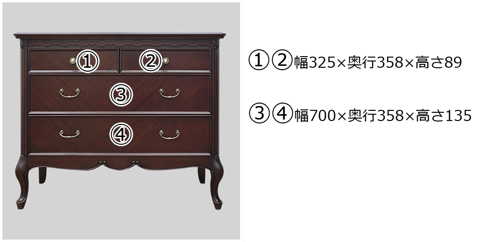 チェスト「フルール85 DM」幅85cm マホガニー材ダークブラウン色