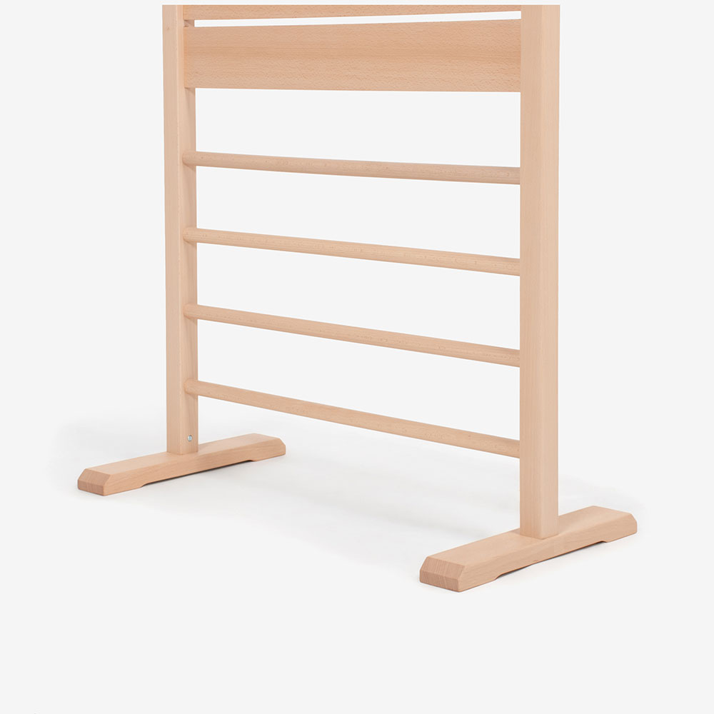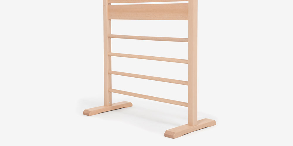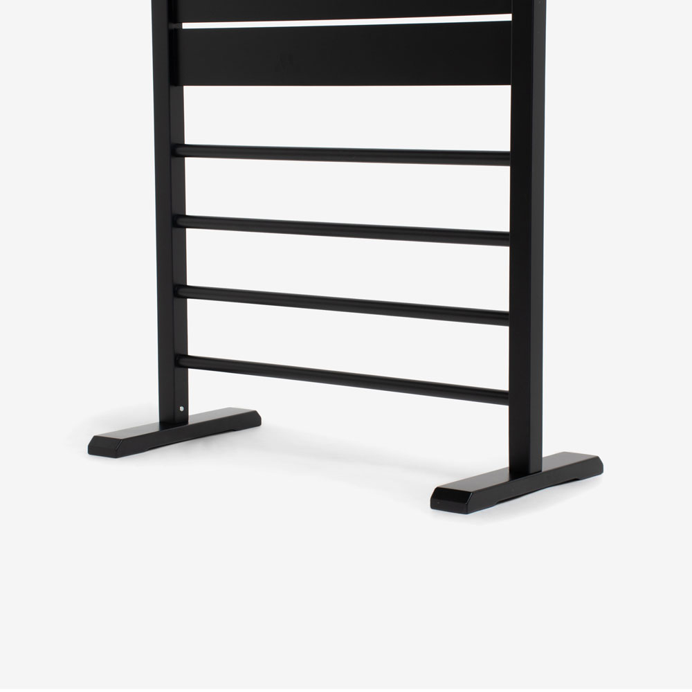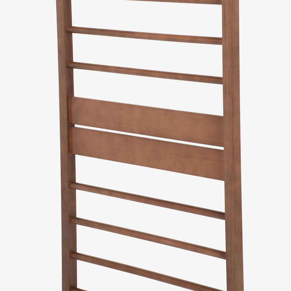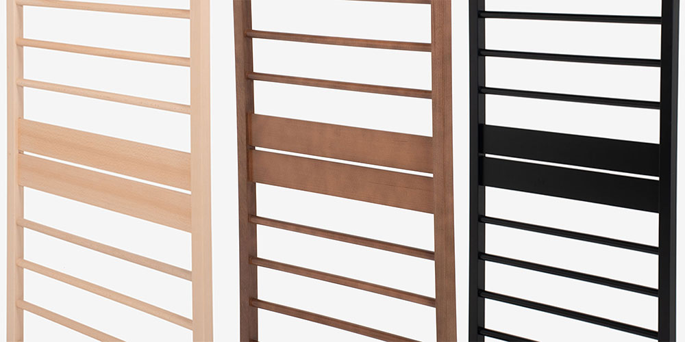 壁際に置いたり、間仕切りの代わりに置いたり、場所を選ばず設置できる自立型のラダーラックです。しっかりとバランスの取れる脚を備えていますので、立てかけ式と比べても安定感があります。洋服をかけたり、インテリアプランツをかけたり、使い方は様々です。お部屋に合わせて選べる3色展開です。