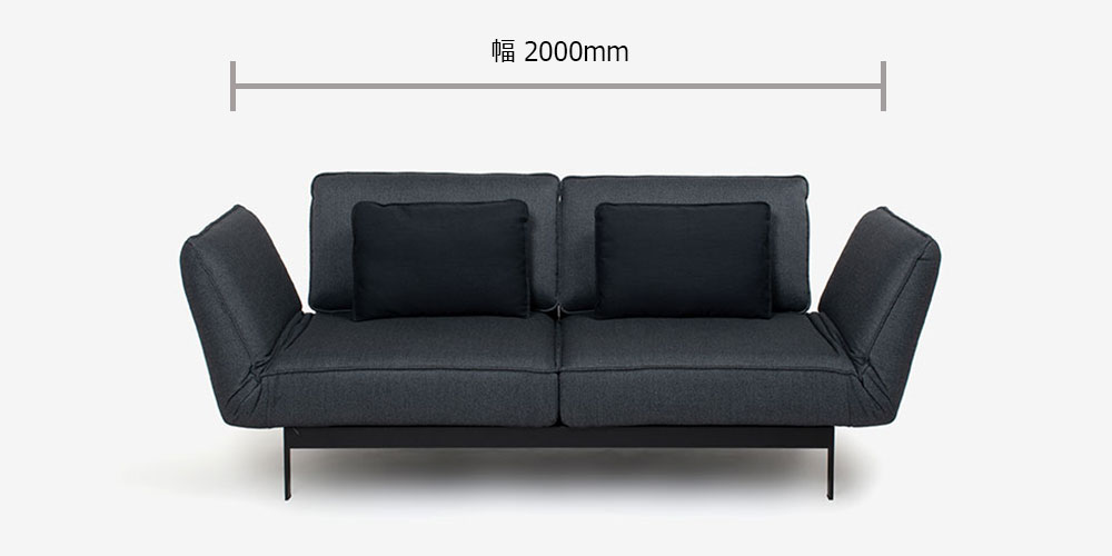 通常時のサイズが幅2000x奥行920x高さ820と、輸入ソファにも関わらず非常にコンパクトです。