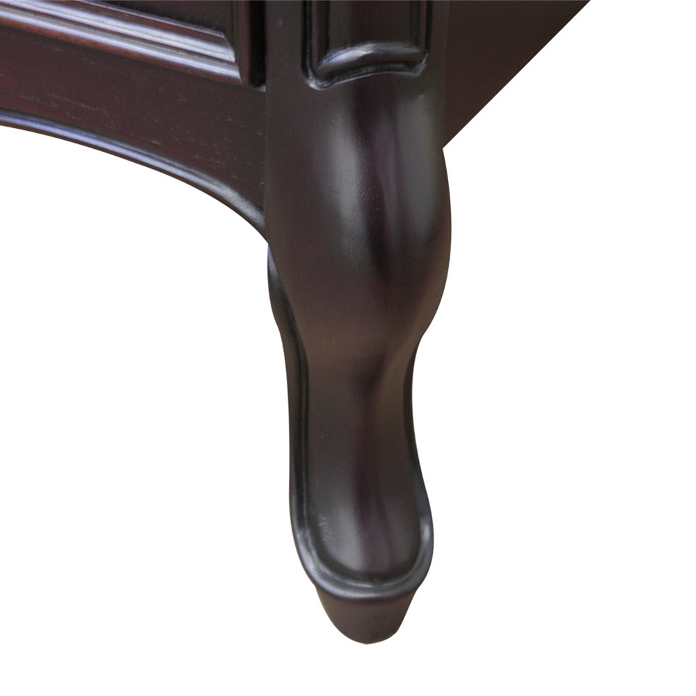 マホガニー材を贅沢に使い、表面は厳選された木目を使った化粧張りを施し、フレンチエレガンスの代名詞といえる「カブリオールレッグ」(猫脚)と、なめらかな女性的な美しいラインとマホガニー無垢材を削り出した彫刻が特徴です。 ゆるやかにカーブした柔らかなラインとカブリオールレッグ(猫脚)と彫刻が上品な雰囲気と可愛らしさを際立たせています。