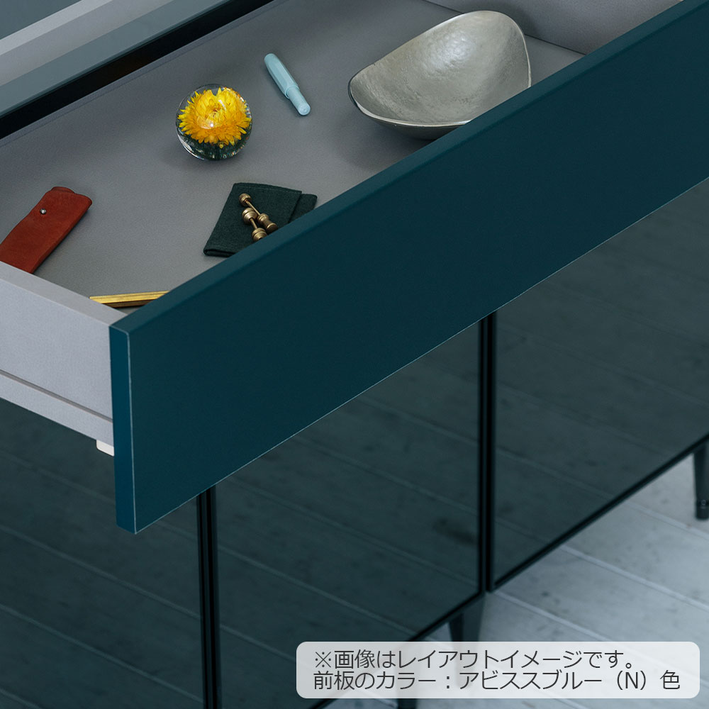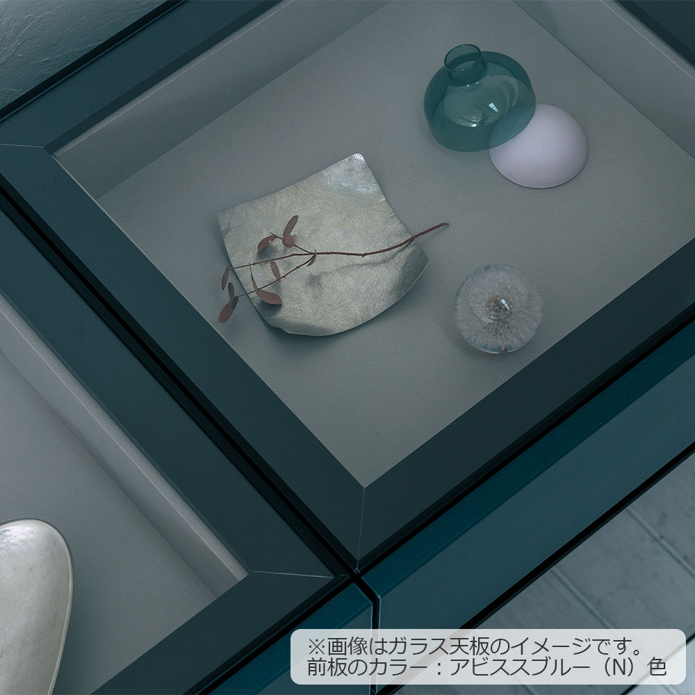 ※画像はガラス天板のイメージです。小物類は付属しません。前板のカラーはアビスブルー(N)色を使用しています。