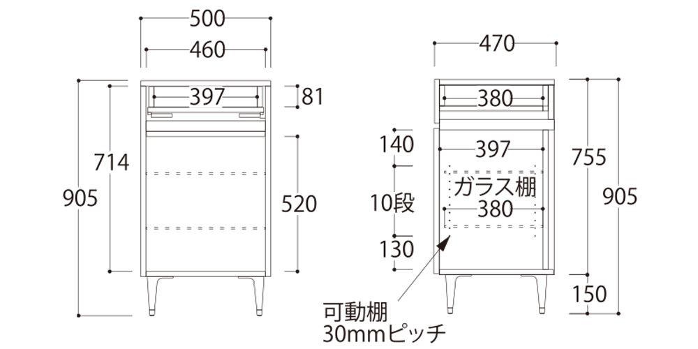幅500x奥行470x高さ905