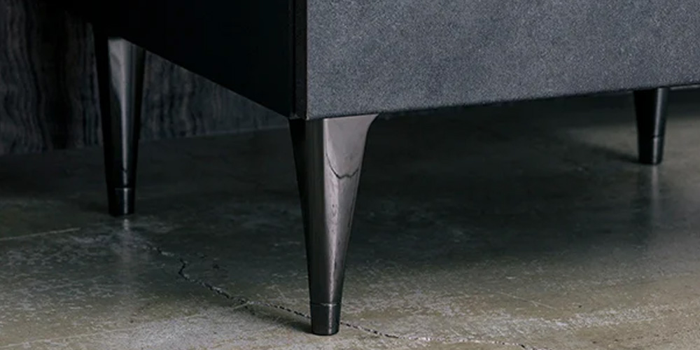 美しいシルエットの脚部は高さが15cmありすっきりとした印象です。床との相性によるガタツキにも対応できるアジャスター付きです。