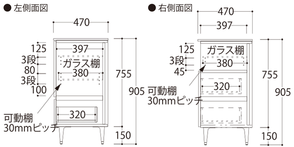 ガラス棚板耐荷重:約10kg(1枚あたり)