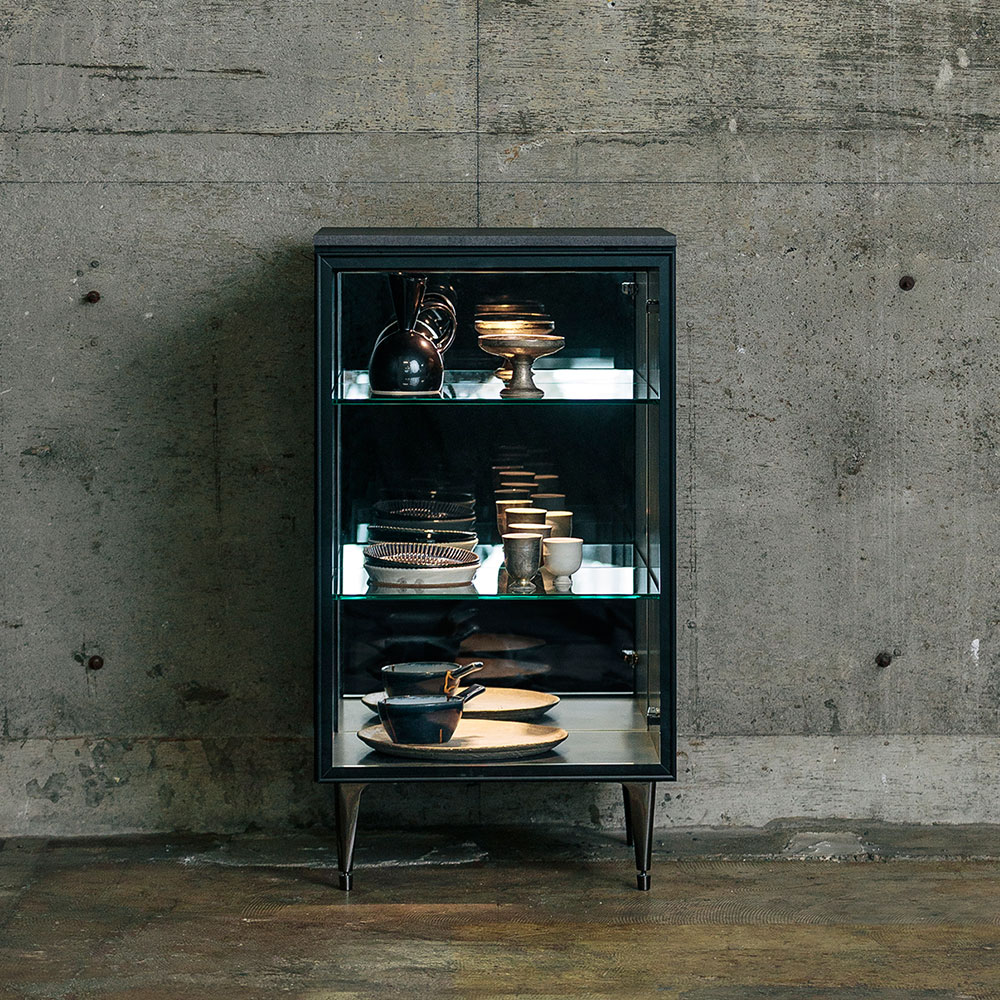 ディスプレイイしたアイテムをLED照明で照らすことで、空間に独特の世界観が広がります。背面ミラーとLED照明がお気に入りのアイテムを上品に演出します。
