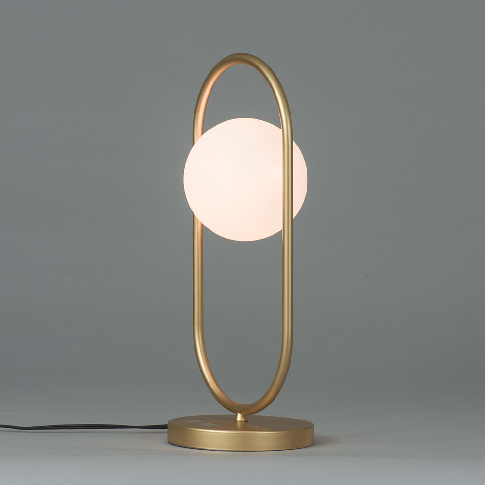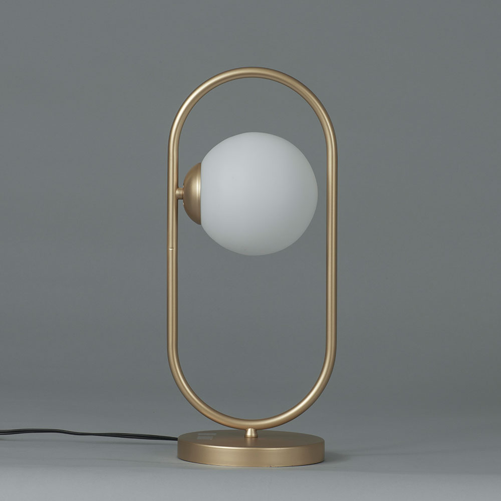 少々マットな質感のサテンゴールドのフレームは、煌びやかすぎず上品で落ち着いた印象です。光原の見えない乳白色のセードはまぶしすぎず、ベッドルームなどにおすすめです。