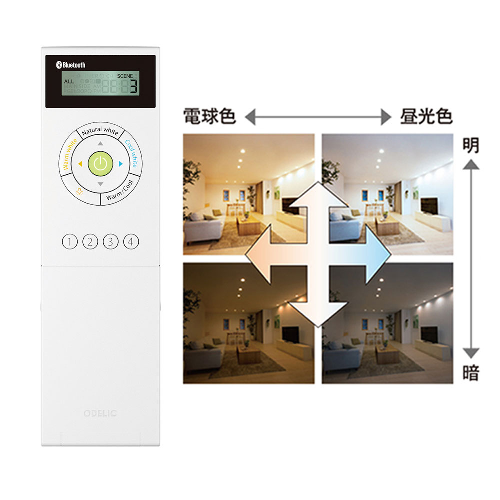 別売りのリモコンでさわやかな光とくつろぎのあかり。生活シーンに合わせて、あかりの色と明るさを切り替えることができます。