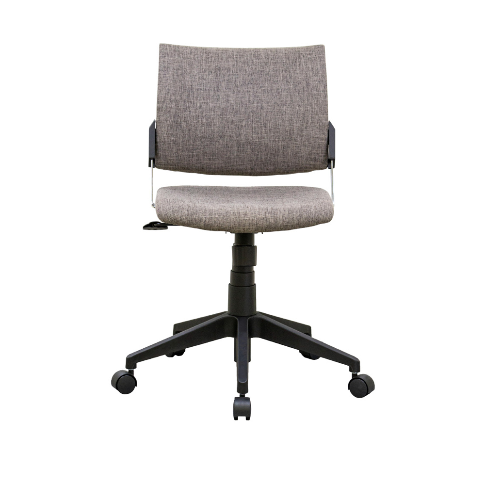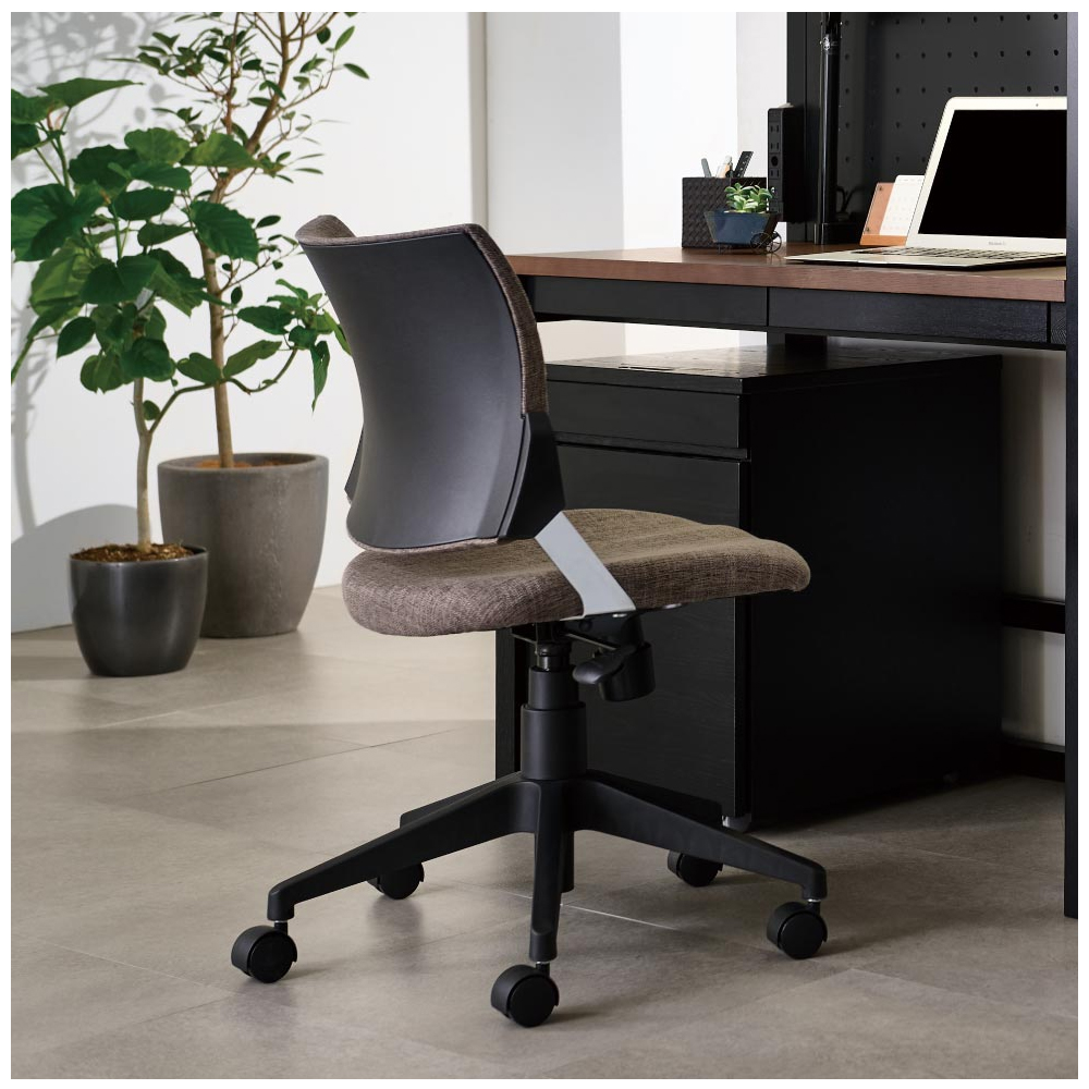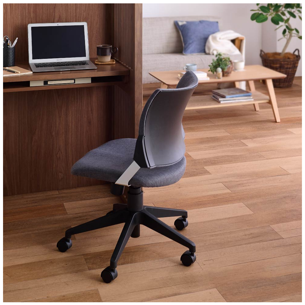 コンパクトなサイズで様々なスペースで使いやすいデスクチェアです。やさしい印象のファブリック張りとすっきりとシャープな後ろ姿で、リビングのインテリアにもマッチします。