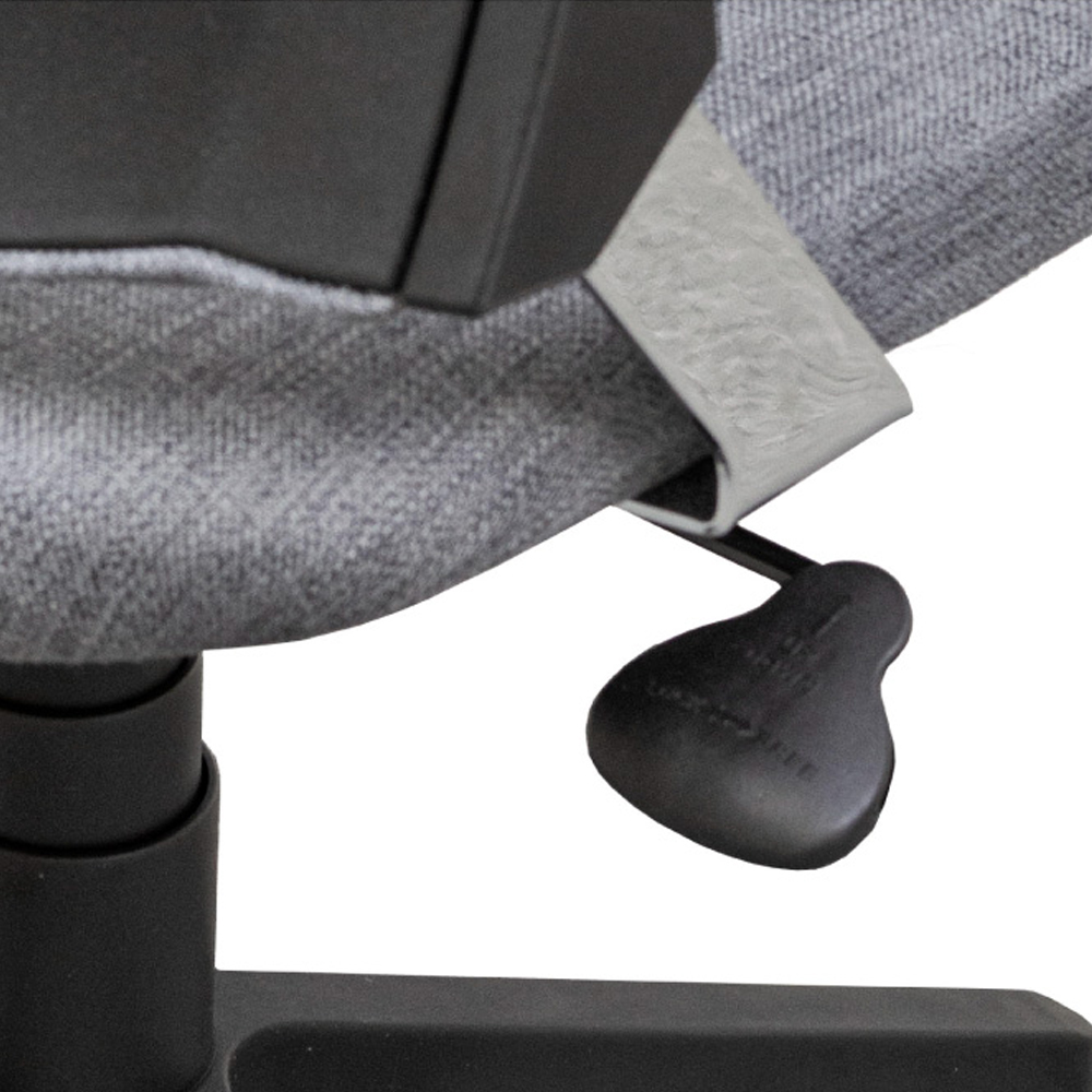 座面高40〜49cmまで高さ調節が可能です。背もたれが後ろに倒れるロッキング機能もついており、座ったままリフレッシュすることができます。ロッキングの強弱は座面下のノブを回すことで調整できます。背もたれのやさしい曲線が身体にフィットします。