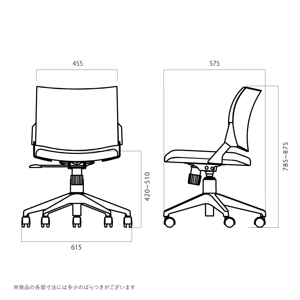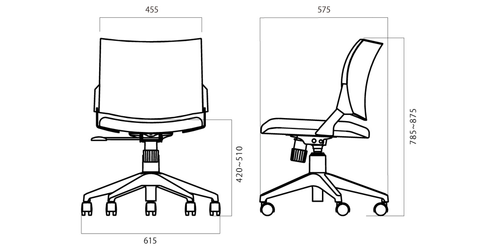ガスシリンダー式座面高調節(座面高400〜490mm)
