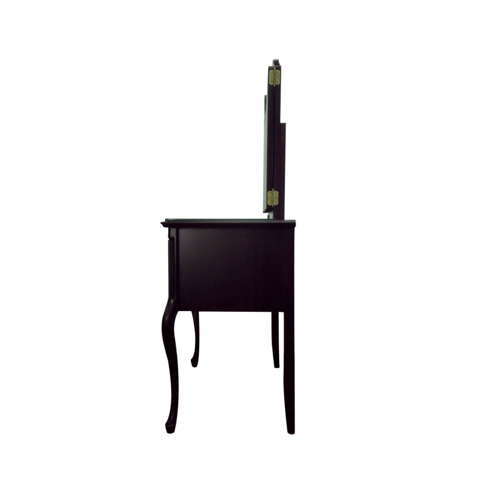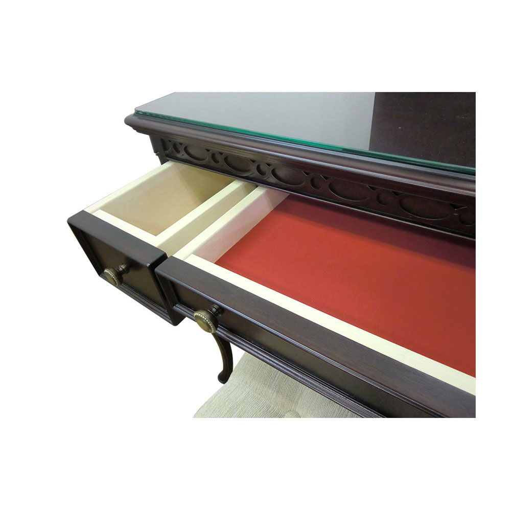 マホガニー材のソフトな木肌を活かし、フレンチクラシック調のエレガンスなデザインと、落ち着いたダークカラーに仕上げたドレッサーです。