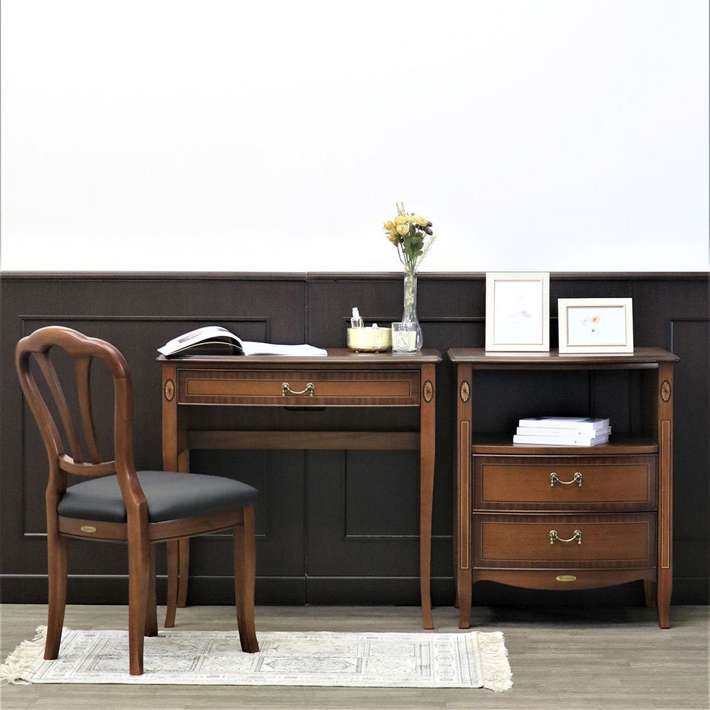 伝統的なヨーロピアンクラシックデザインを独自な象嵌細工や装飾で表現したエレガントシリーズ。薄い単板を幾層にも貼り合わせ成形技法で作られた、柔らかな曲面の扉のまわりには、細いリブラインを入れ、把手やハンドルはヨーロッパ調のタッセルをモチーフにしたデザインを採用し、エレガンスさと繊細なイメージを強調しています。