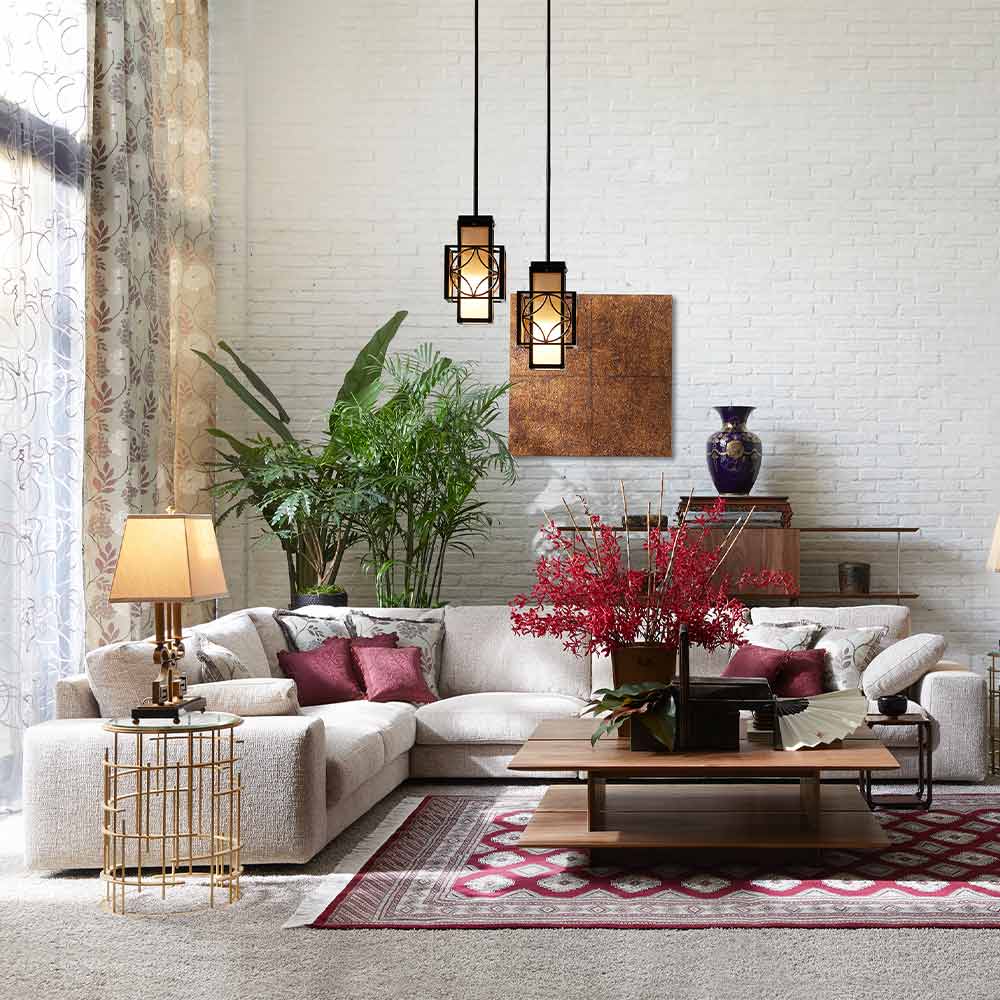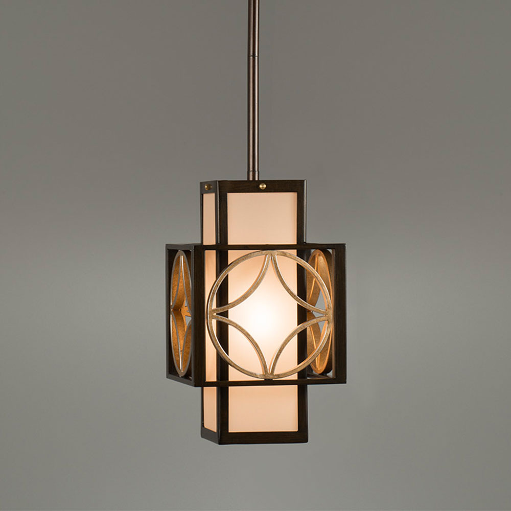 オーガンジーセードの外側に浮かび上がった装飾的なフレームによって器具本体の奥行きを感じられます。ブロンズとフレンチゴールド色の美しい組み合わせが空間を引き立てます。和の要素も感じられるなど、あらゆるテイストのインテリアに合わせられます。
