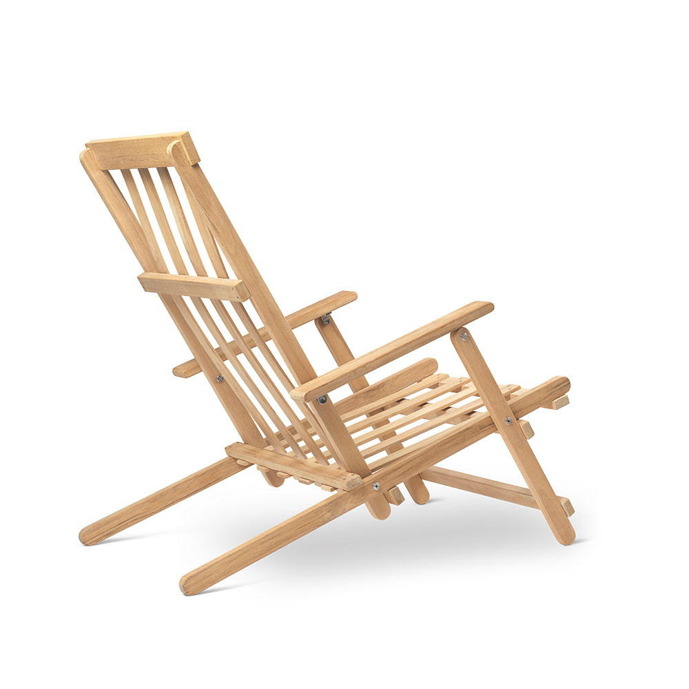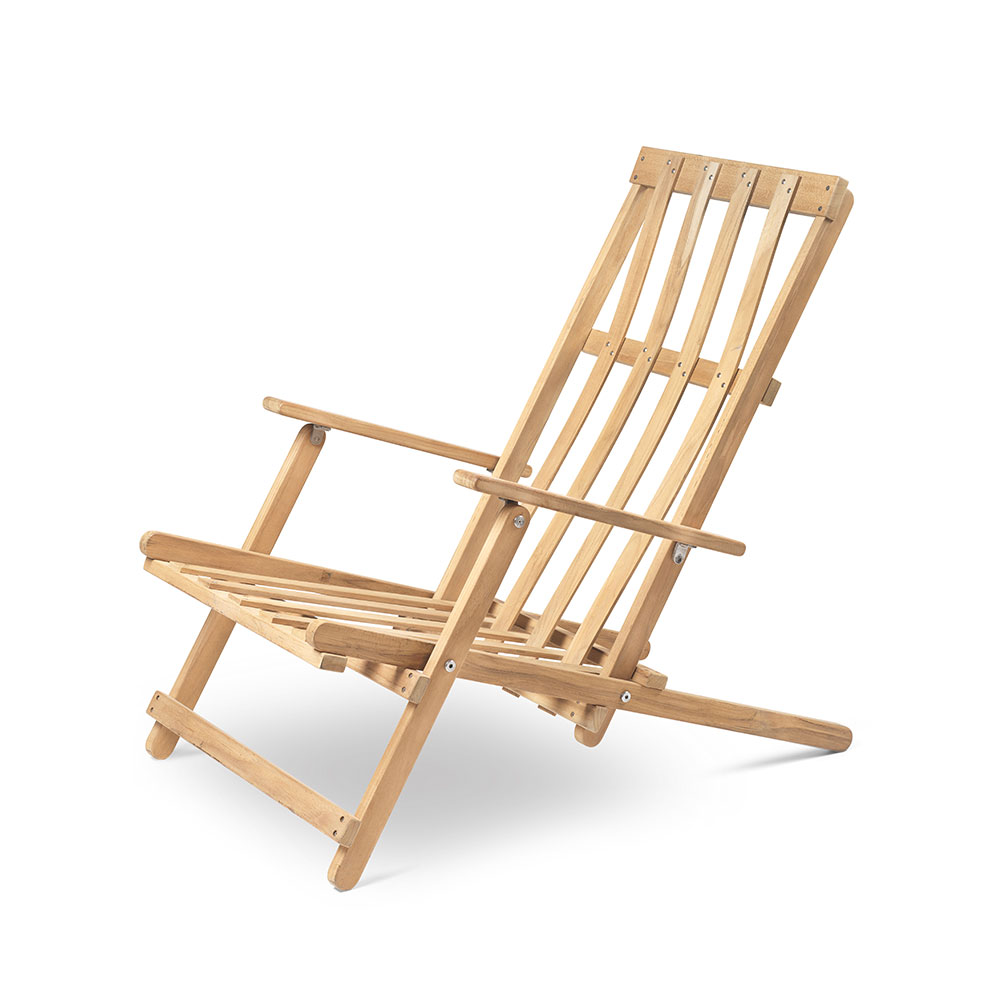 2020年に復刻されたボーエ・モーエンセンのデッキチェアです。1960年代に自邸のバルコニー用に開発されました。人を引き寄せる温もりと、優雅な落ち着きを備えたデザインです。フレームには無塗装のFSC® (森林管理協議会) 認証のチーク材を使用し、クッションには耐候性に優れるSunbrella社の張地を使用しています。