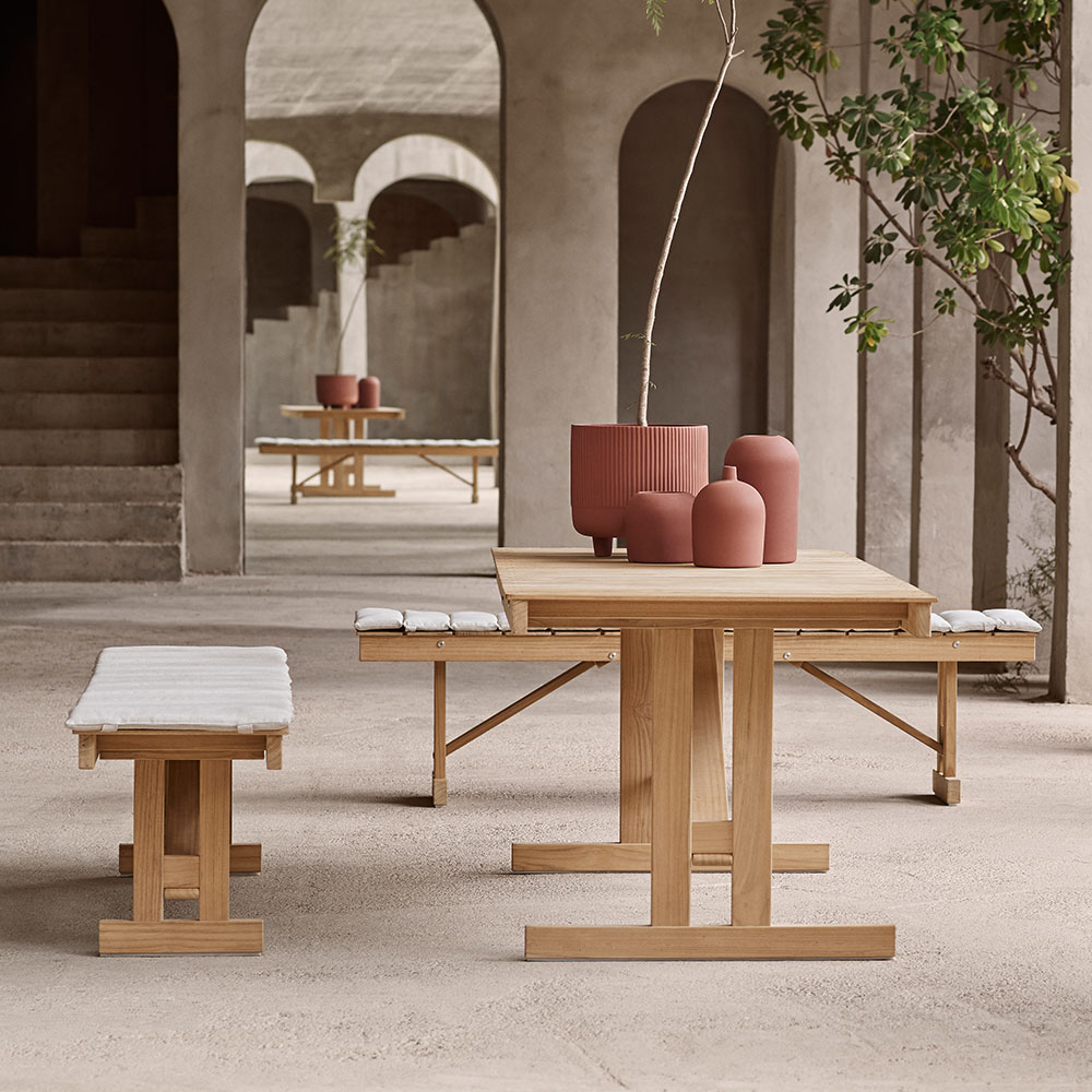 ボーエ・モーエンセンのディテールへのこだわりは、アウトドア家具シリーズにおいても健在です。自邸のバルコニーでの使用を念頭にデザインされており、折りたたみ機能などモダンライフにふさわしい実用性も備えたアウトドア家具のシリーズです。※画像はアウトドアシリーズのイメージです。
