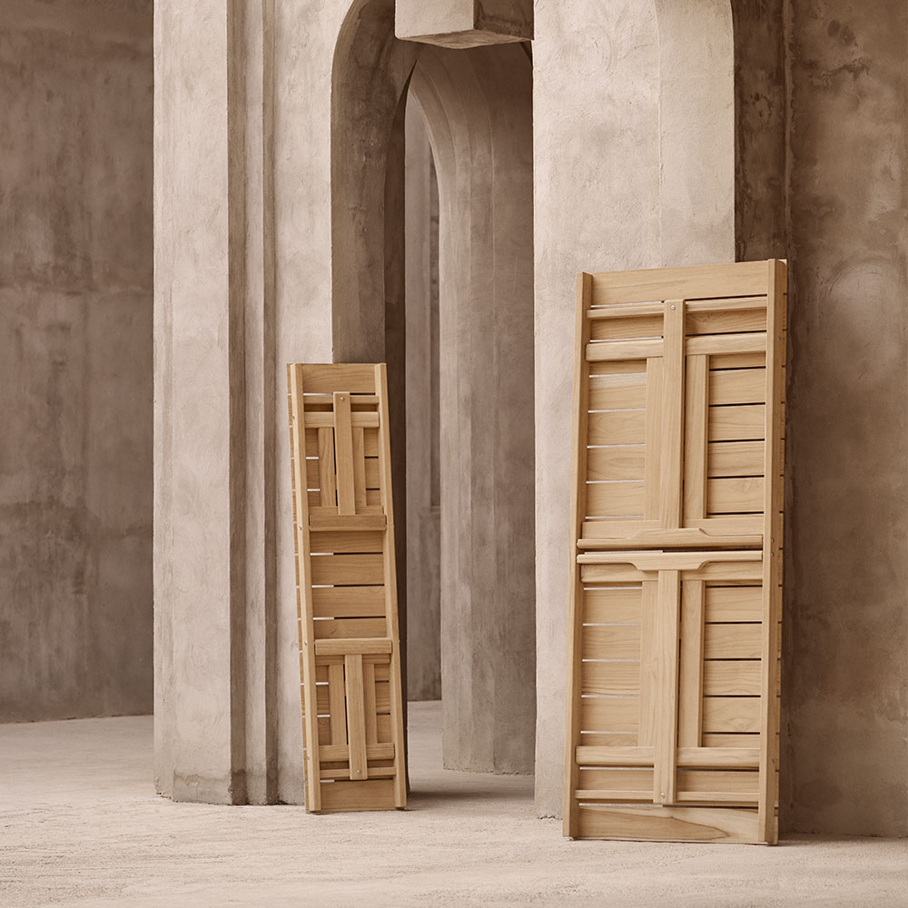 1971年にボーエ・モーエンセンの機能性への飽くなき探求から生まれた、折りたたみ式のアウトドア・テーブルです。FSC® (森林管理協議会) 認証のチーク材を使用しています。
