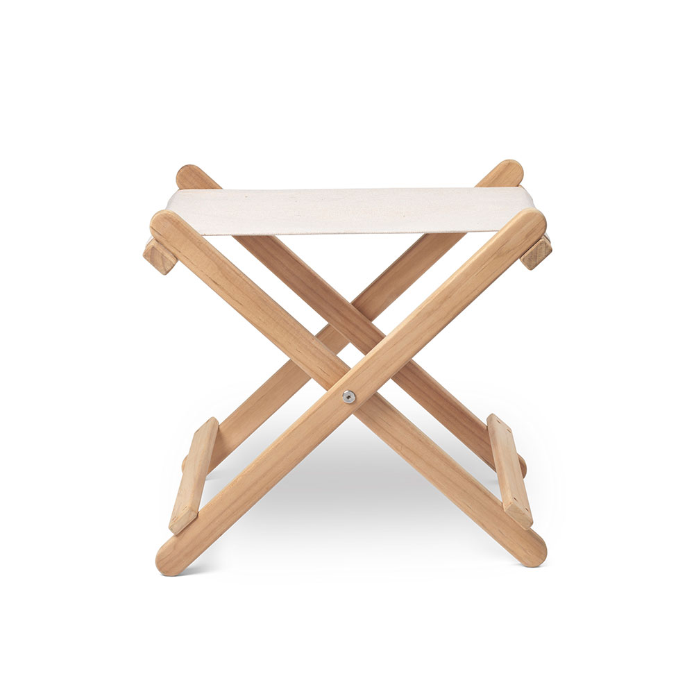 ボーエ・モーエンセンが1960年代後半に発表した屋外で使用できるデッキチェアシリーズのフットスツールです。フレームには無塗装のFSC® (森林管理協議会) 認証のチーク材を使用し、張地には耐候性に優れるSunbrella社の張地を使用しています。