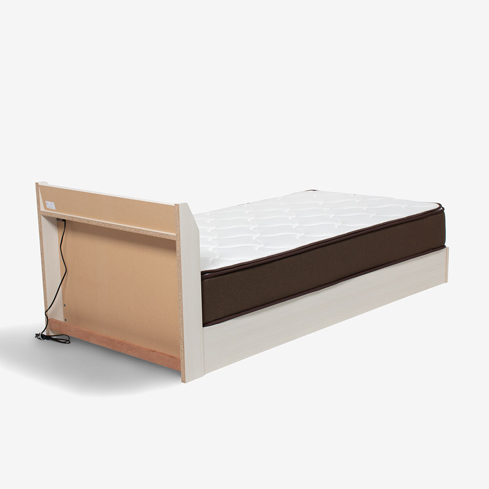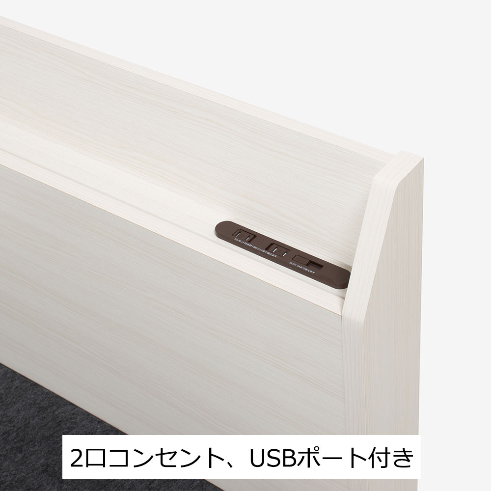 宮付きでありながらも薄手のヘッドボードは圧迫感がなく、お部屋の場所もとりません。コンセントとUSBポートはほこりの侵入を防ぐスライド式です。