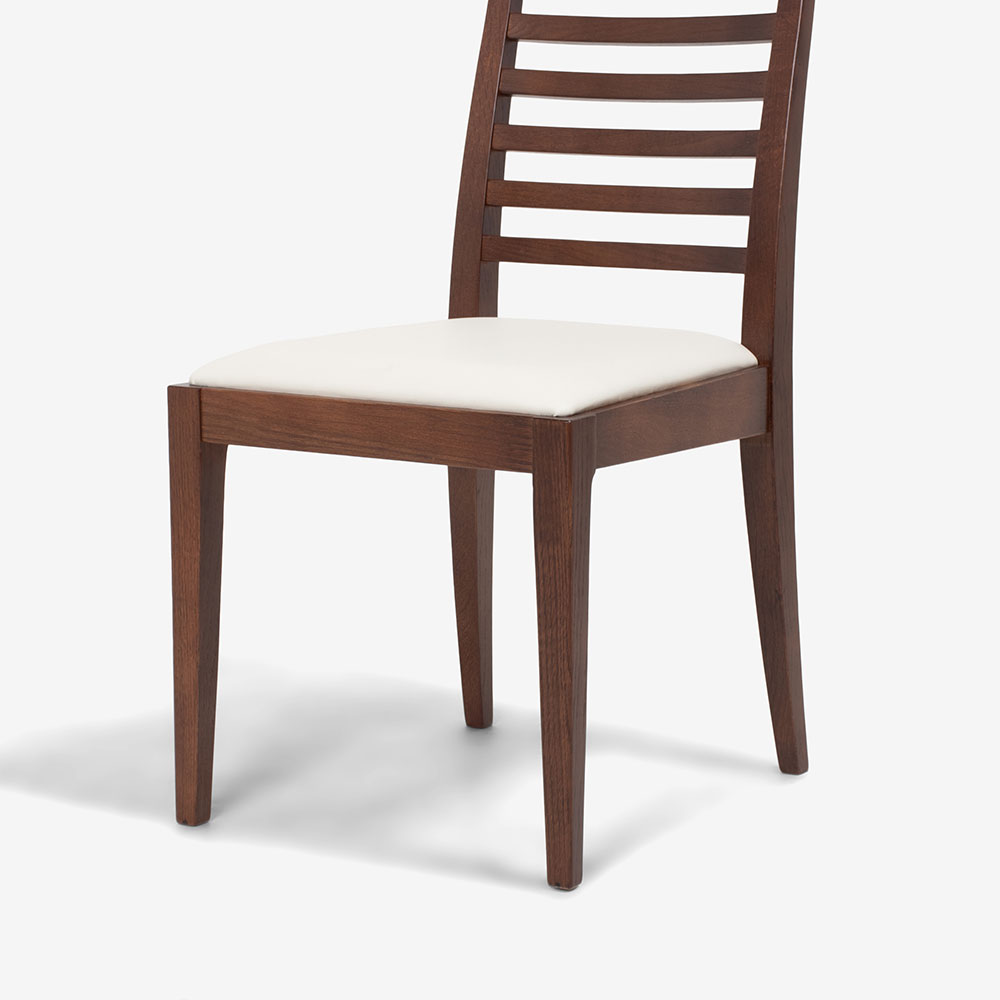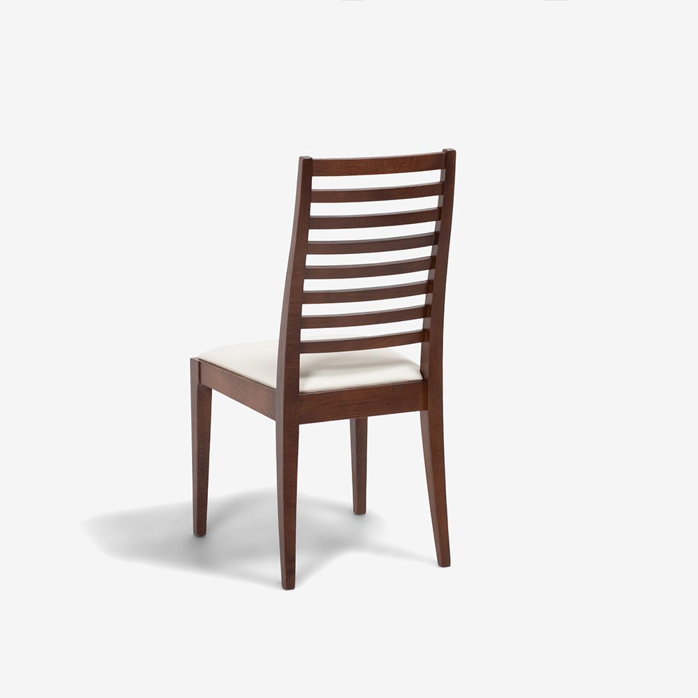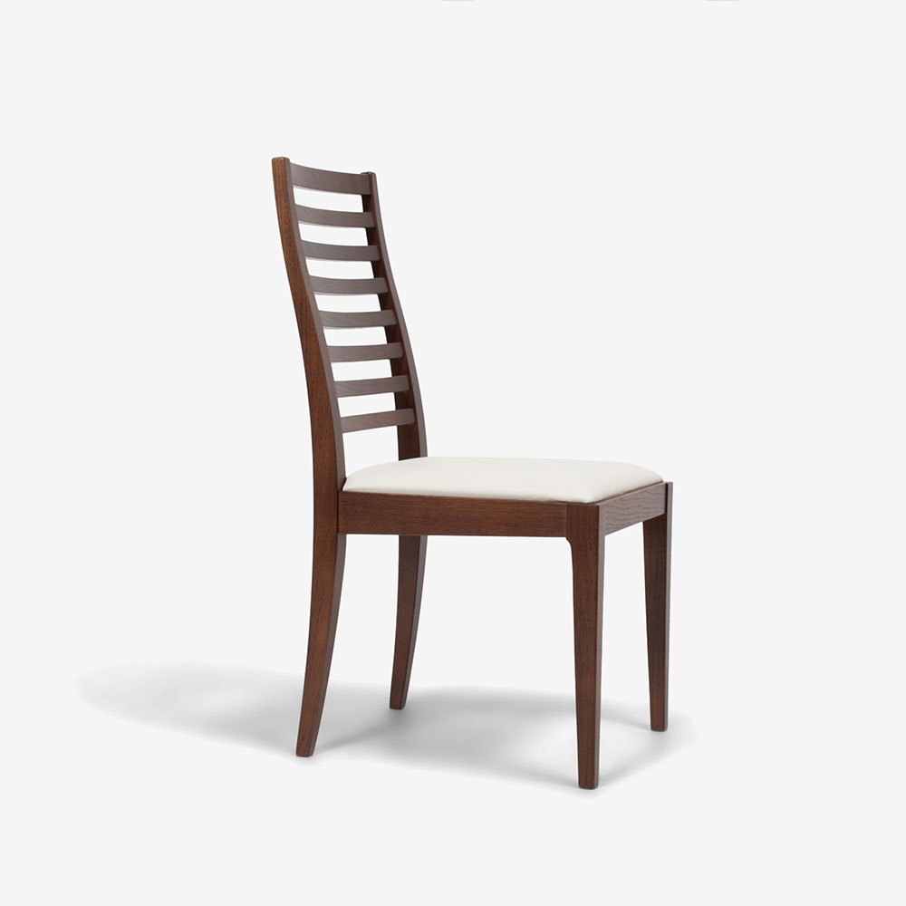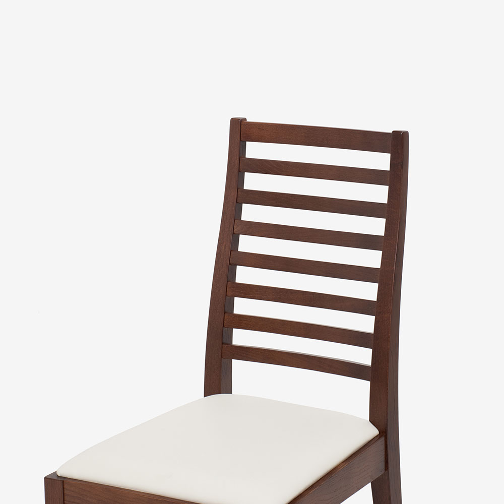 シンプルなデザインはどのようなお部屋にも合わせやすく、スッキリとした背もたれは軽やかな印象を与えてくれます。横格子の背もたれは椅子を引きやすく、実用的でもあります。