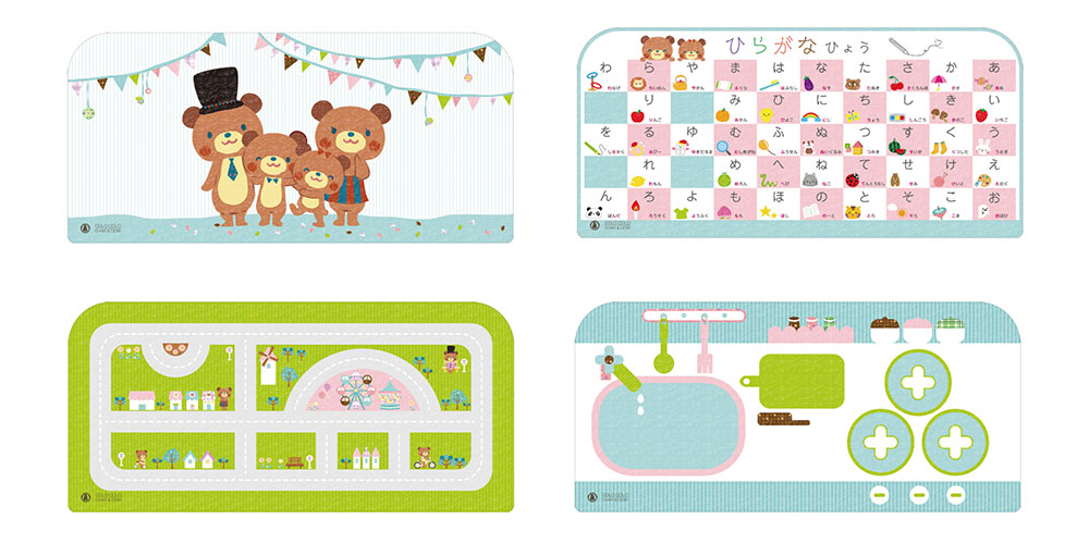 デスクマットの下敷きは2枚、表裏で4パターン付きです。