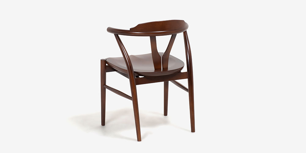 丸みを帯びた優しいデザインが印象的なダイニングチェアです。塗装して仕上げたブナ材は高級感のある雰囲気で、ウォールナット材のダイニングテーブルとも相性がいいです。