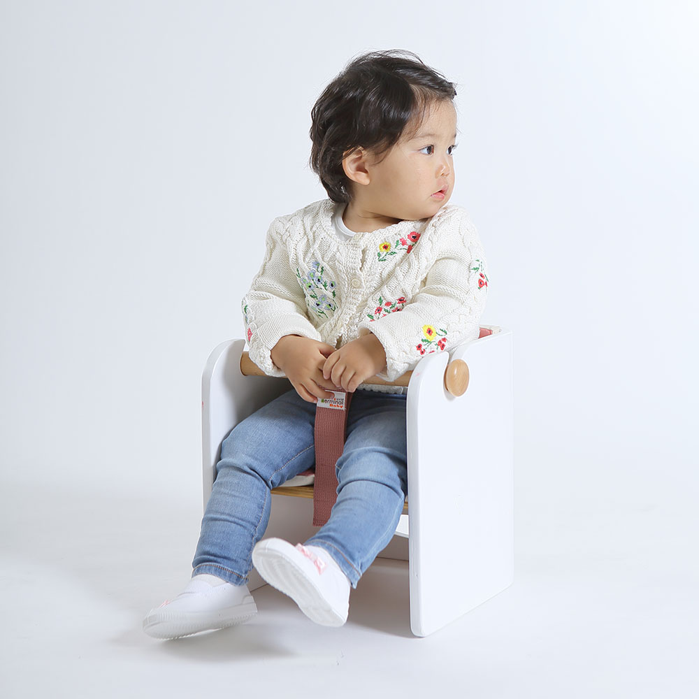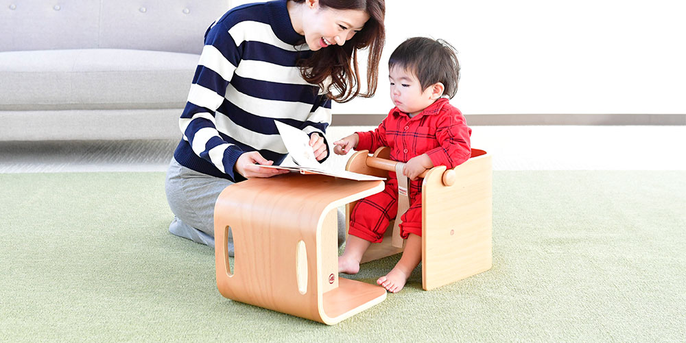北欧インテリアでもよく使われる積層合板を「曲げ木」という技術で成形し、できる限りシンプルに仕上げた、大人のインテリアにも遜色のないデザインです。角の無い丸みを帯びたフォルムだけでなく、塗料や接着剤にはホルムアルデヒドの放散量が極めて少ないもの(F☆☆☆☆対応)を、塗料は赤ちゃんが舐めても溶出せず、安全性の高いものを選んで使用しています。