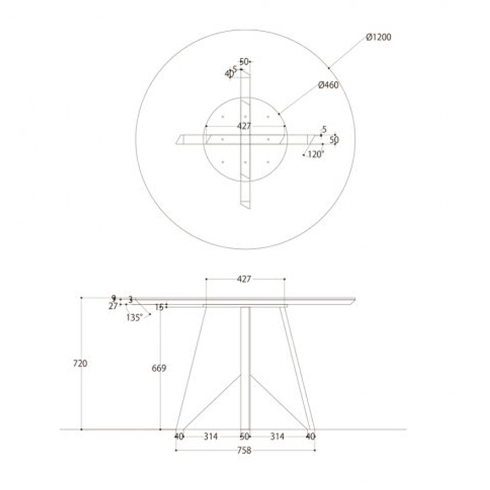 ダイニングテーブル「マスターピース MP120 ラウンド」円形 直径120cm ナチュラル/ホワイト