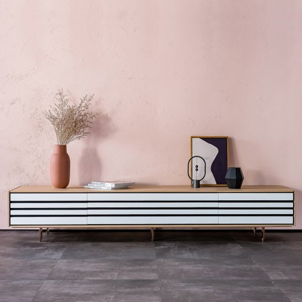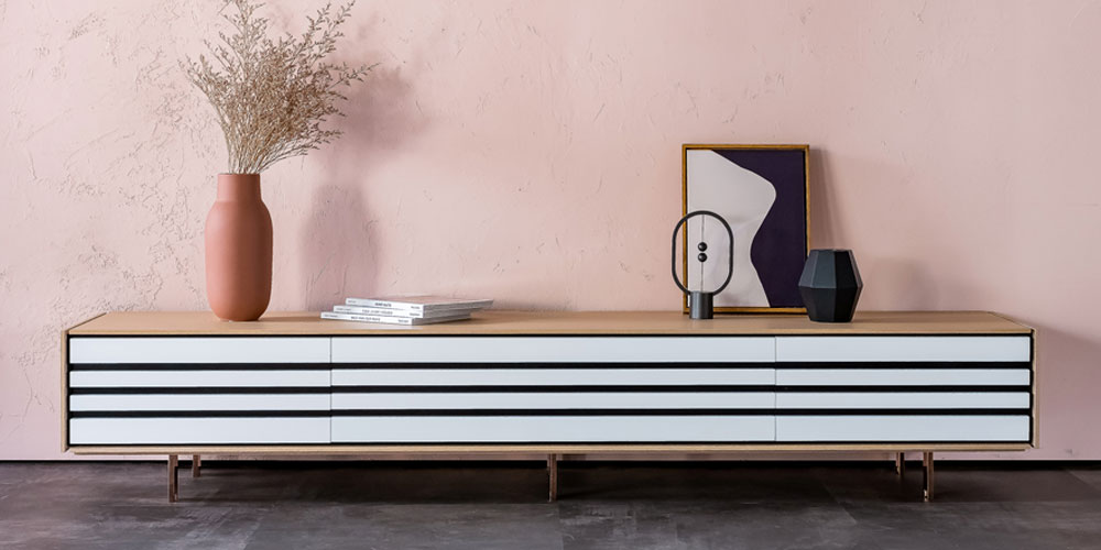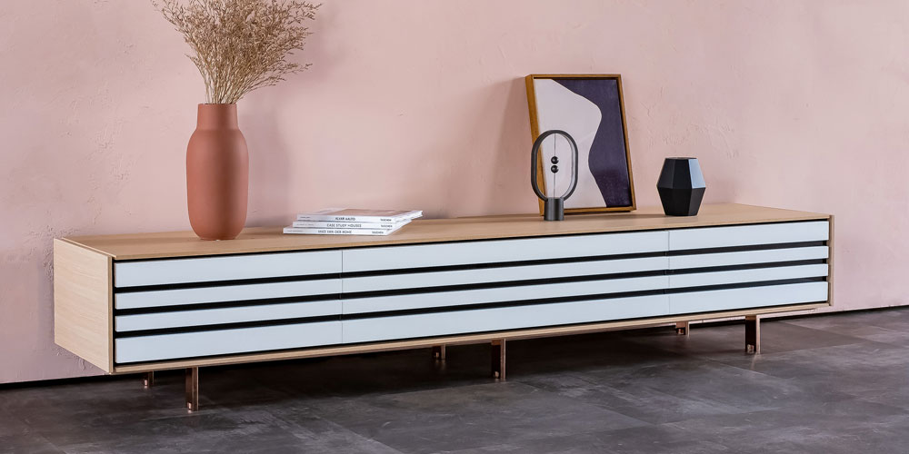 美しいストレートラインで描かれたミニマルデザインのテレビボード「マスターピース」