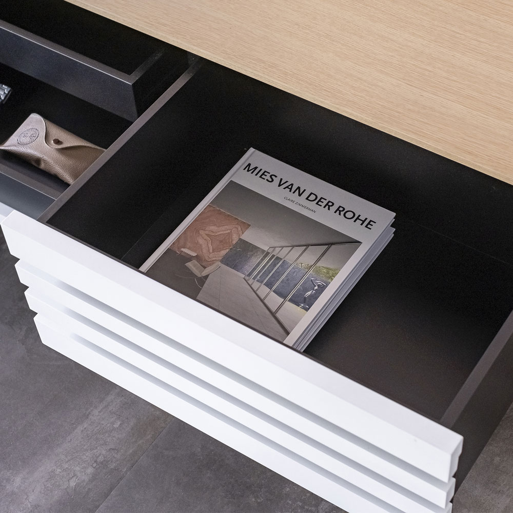 ナチュラルとブラックのコントラストが美しい組み合わせです。スタイリッシュなブラックの前板がインテリアを引き締めます。