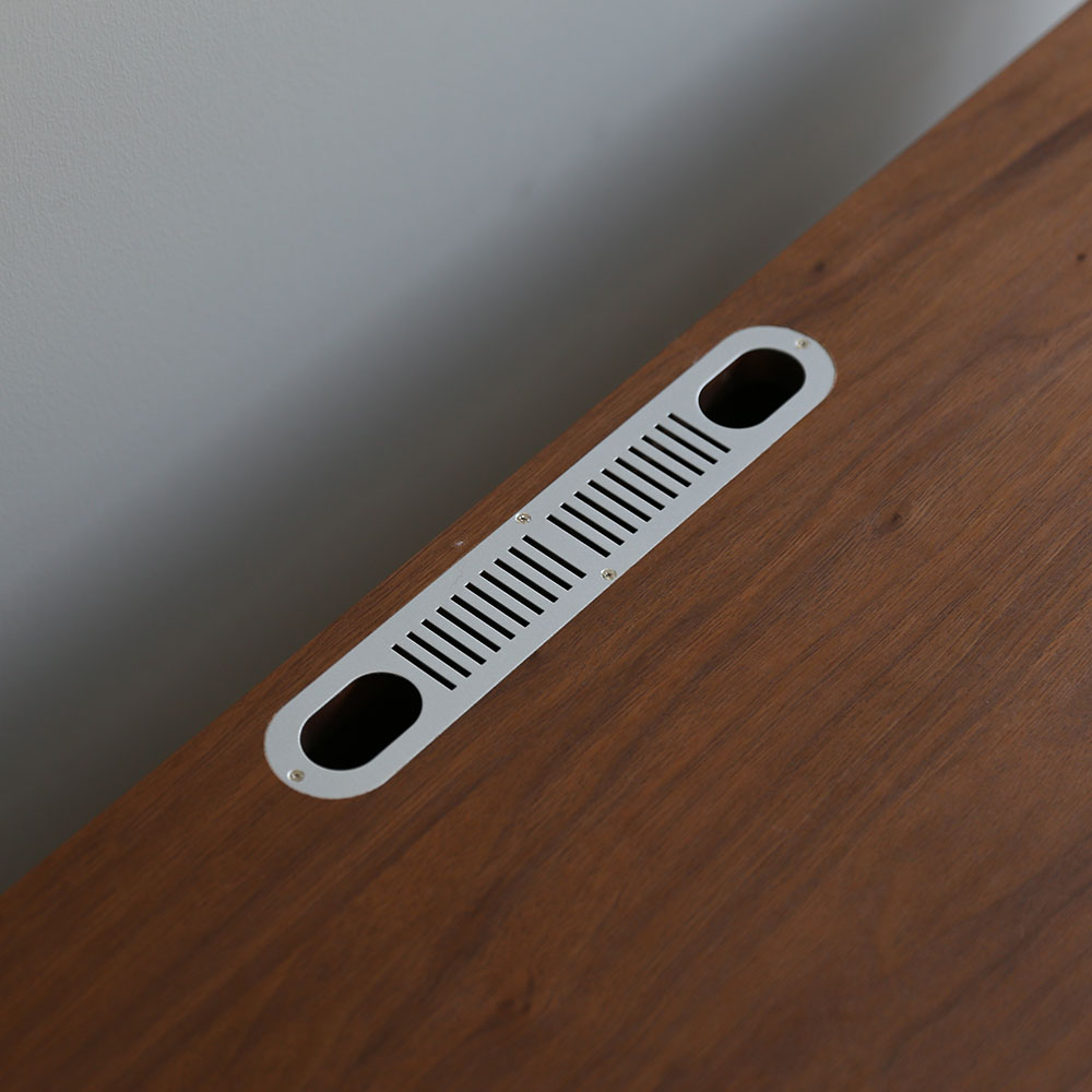 背面にはプリント化粧板を使用。天板中央後部と背面にそれぞれコード兼空気孔が設けれられています。