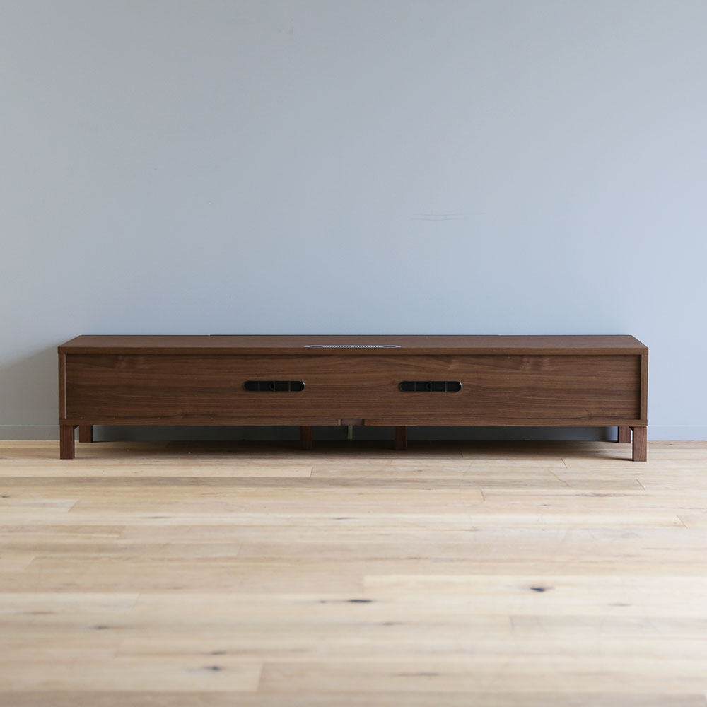 ウォールナット材を贅沢に使用し、シンプルであきのこないナチュラルモダンなデザインが特長のテレビボードです。脚付きのデザインで、圧迫感なくコーディネートしていただけます。