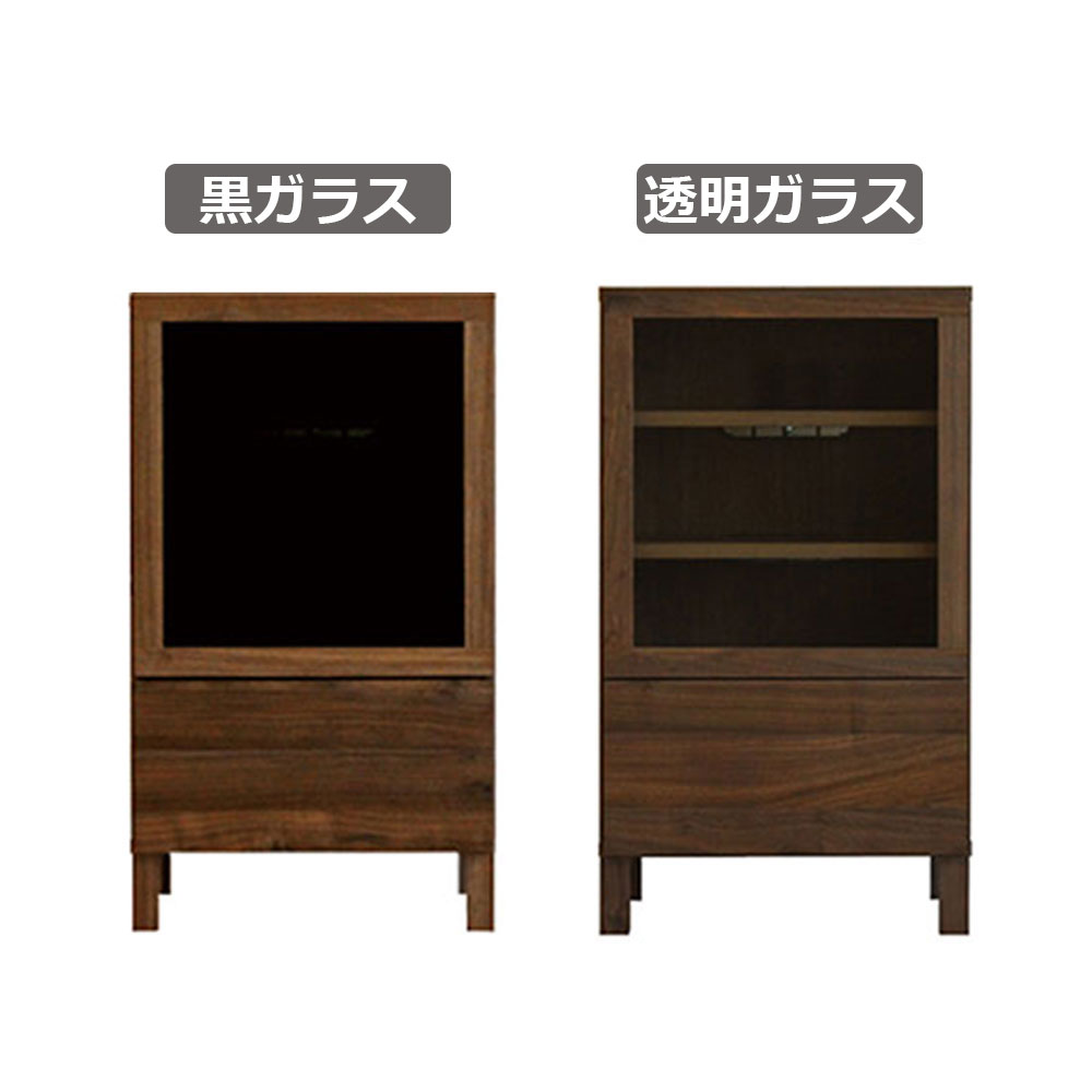 インテリアの雰囲気や収納するものに合わせて、扉のガラス部分はブラックガラスとクリア(透明)ガラスからお選びいただけます。