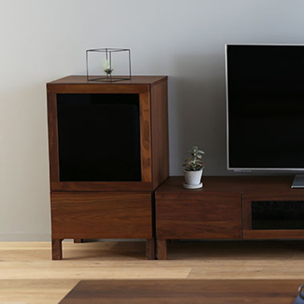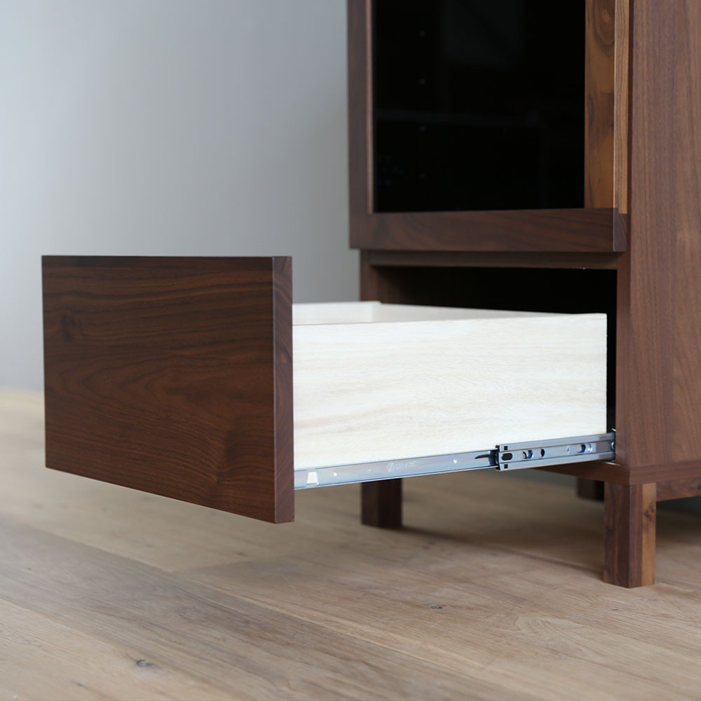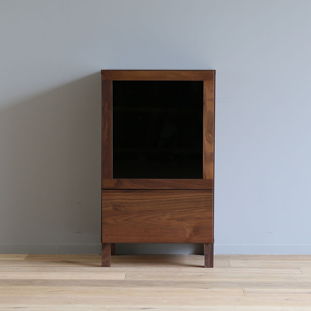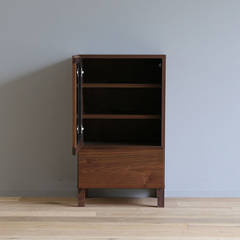 引出し前板、ガラス扉木枠:ウォールナット無垢材