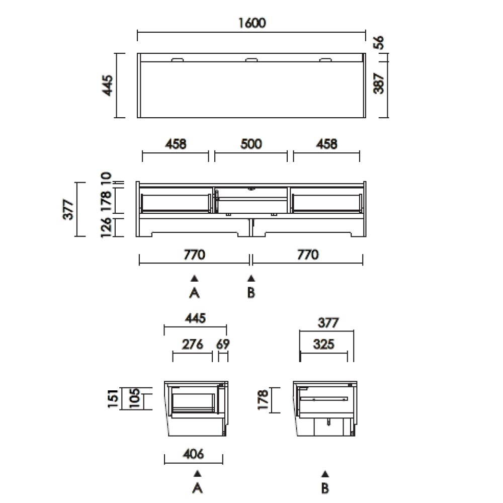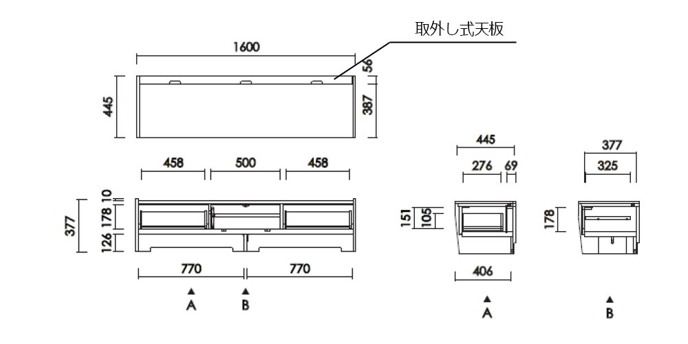 | テレビ160 | 幅1600x奥行445x高さ377 |