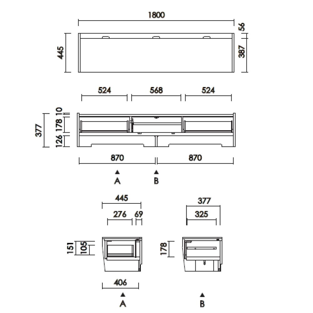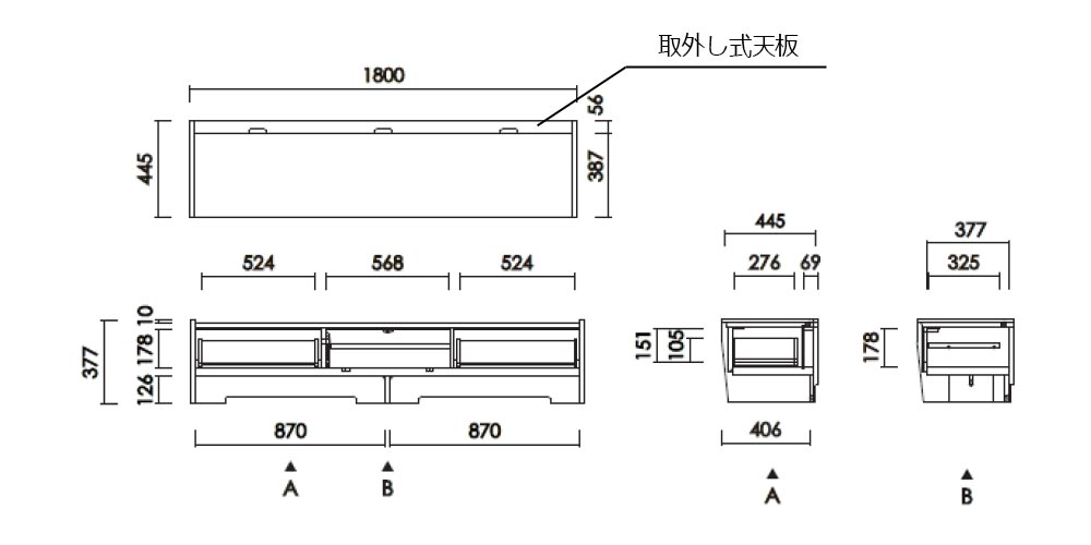 | テレビ180 | 幅1800x奥行445x高さ377 |