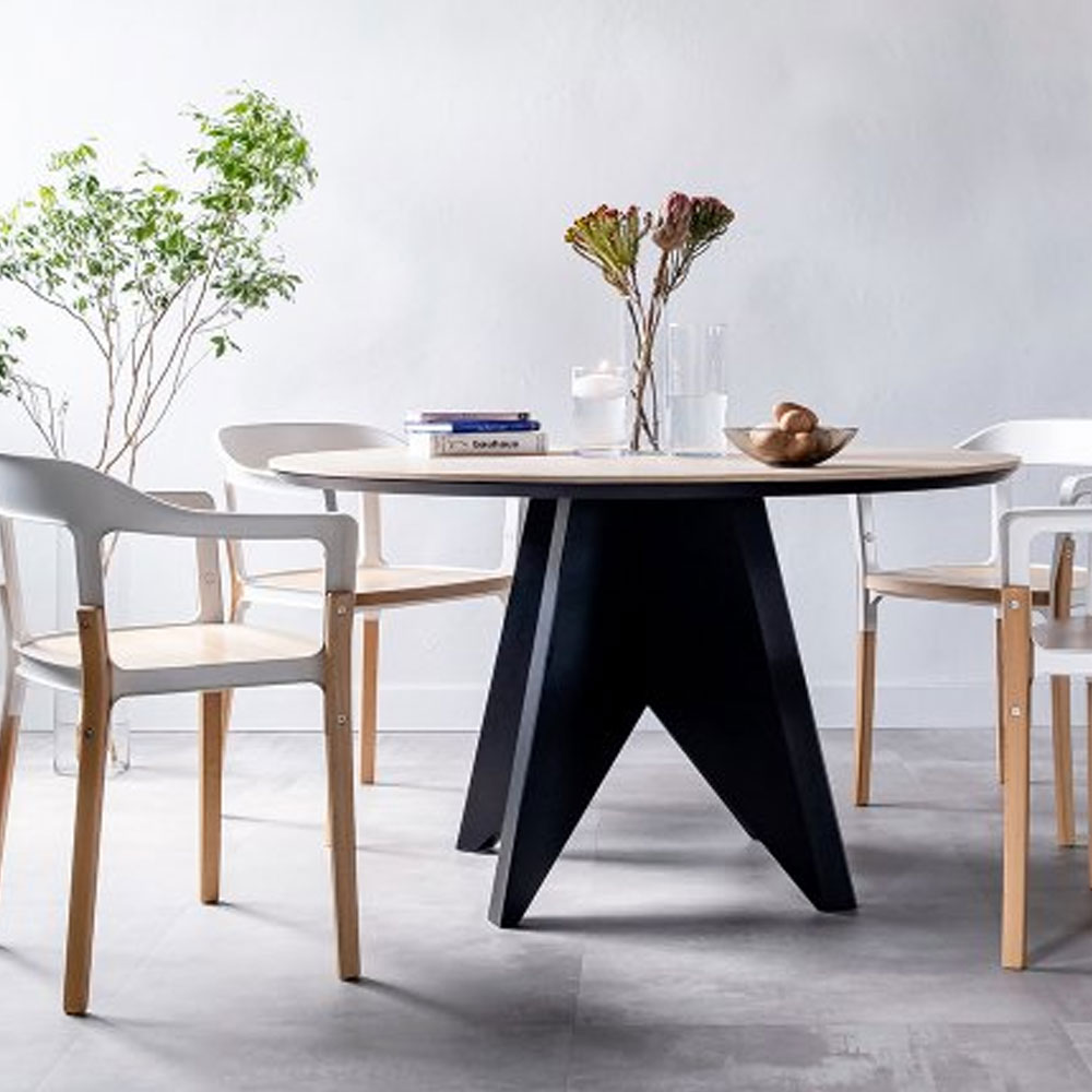 ダイニングテーブル「マスターピース MP120 ラウンド」円形 直径120cm ナチュラル/ブラック