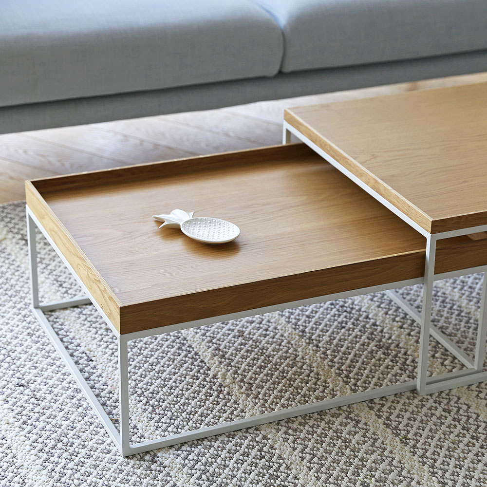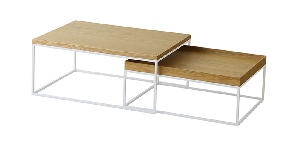 リビングテーブル「LINIE リニエ」大小2点セット ホワイトオーク材/ホワイトフレーム