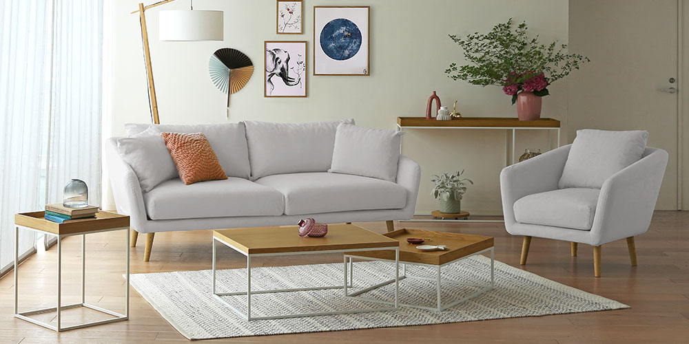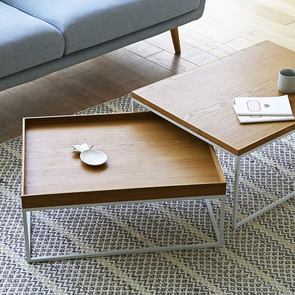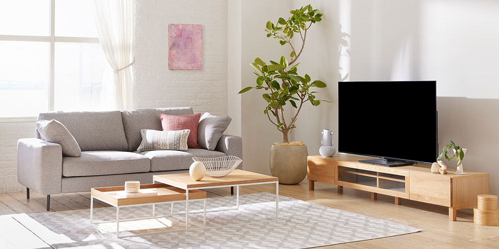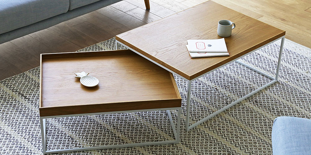 サイズの異なる2つのテーブルをずらして配置することでリビングのアクセントになります。小サイズは物が落ちにくい作りになっており、リモコンなどを細かな物を置いておくスペースとしてお使いいただけます。