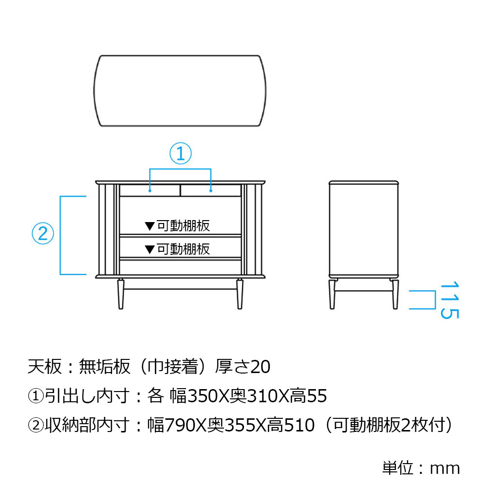 | 収納部内寸 | 幅790x奥行355x高さ510 |