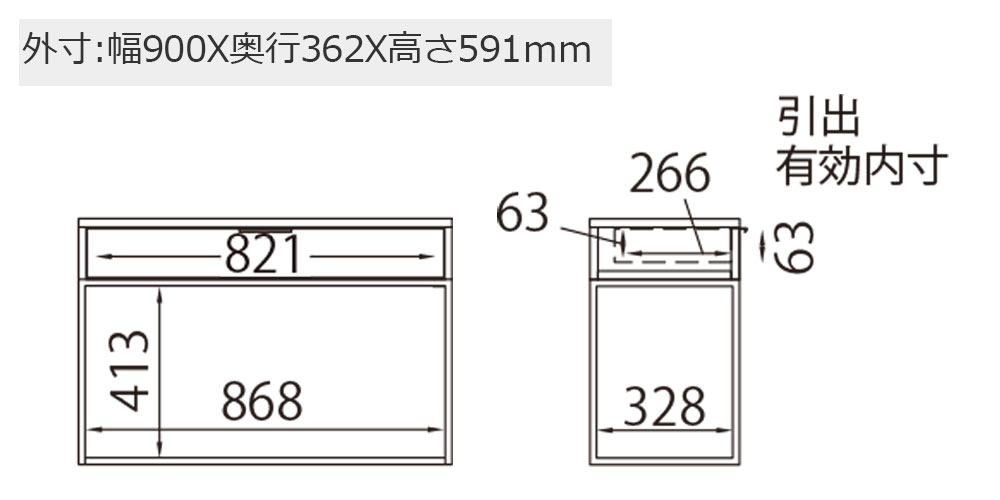 直線的でシンプルなデザインの引出し付きコンソールテーブル「IR-SL90B」