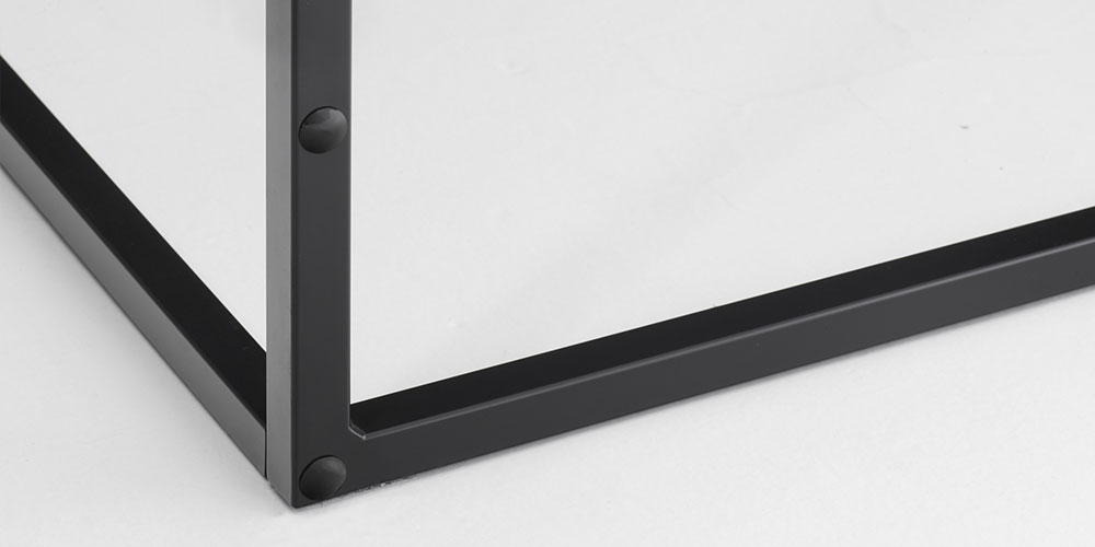 ガラス天板にスチールフレームのシンプルで、モダンな印象のリビングテーブルです。クリアガラスの天板は圧迫感を感じさせず、空間を広く見せてくれます。また、絨毯やラグの柄を活かしたコーディネートにもおすすめです。