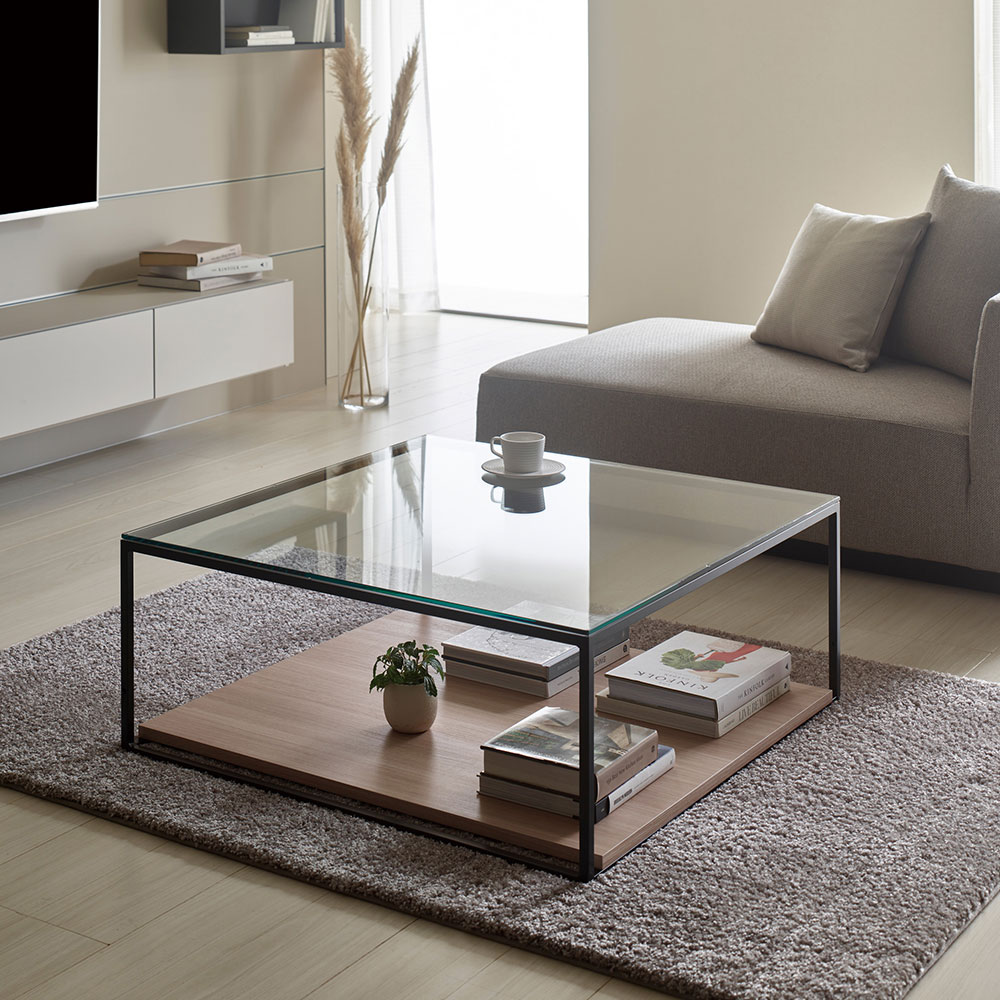Pamouna(パモウナ)リビングテーブル「IR-G90T」ガラス天板 幅90cm 奥行90cm 棚板全3色