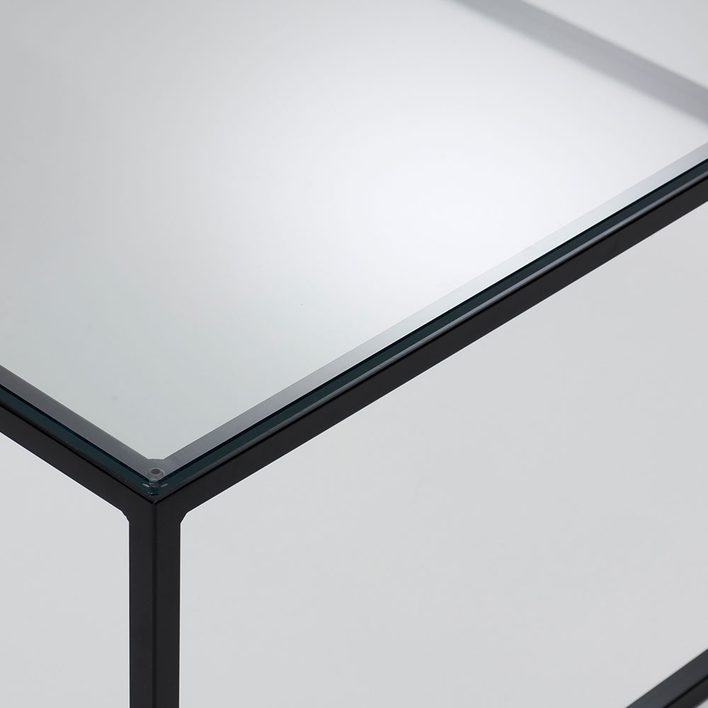 ガラス天板にスチールフレームのシンプルで、モダンな印象のリビングテーブルです。クリアガラスの天板は圧迫感を感じさせず、空間を広く見せてくれます。レイアウトしやすい奥行き44.5cmの長方形タイプです。