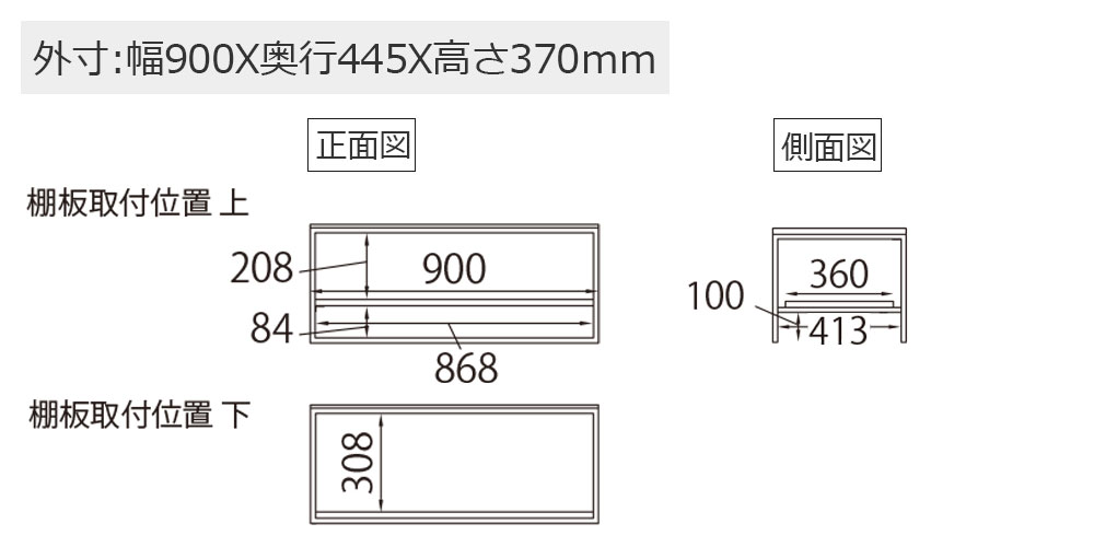 棚板は2段階で取り付け位置を調整することが出来ます。