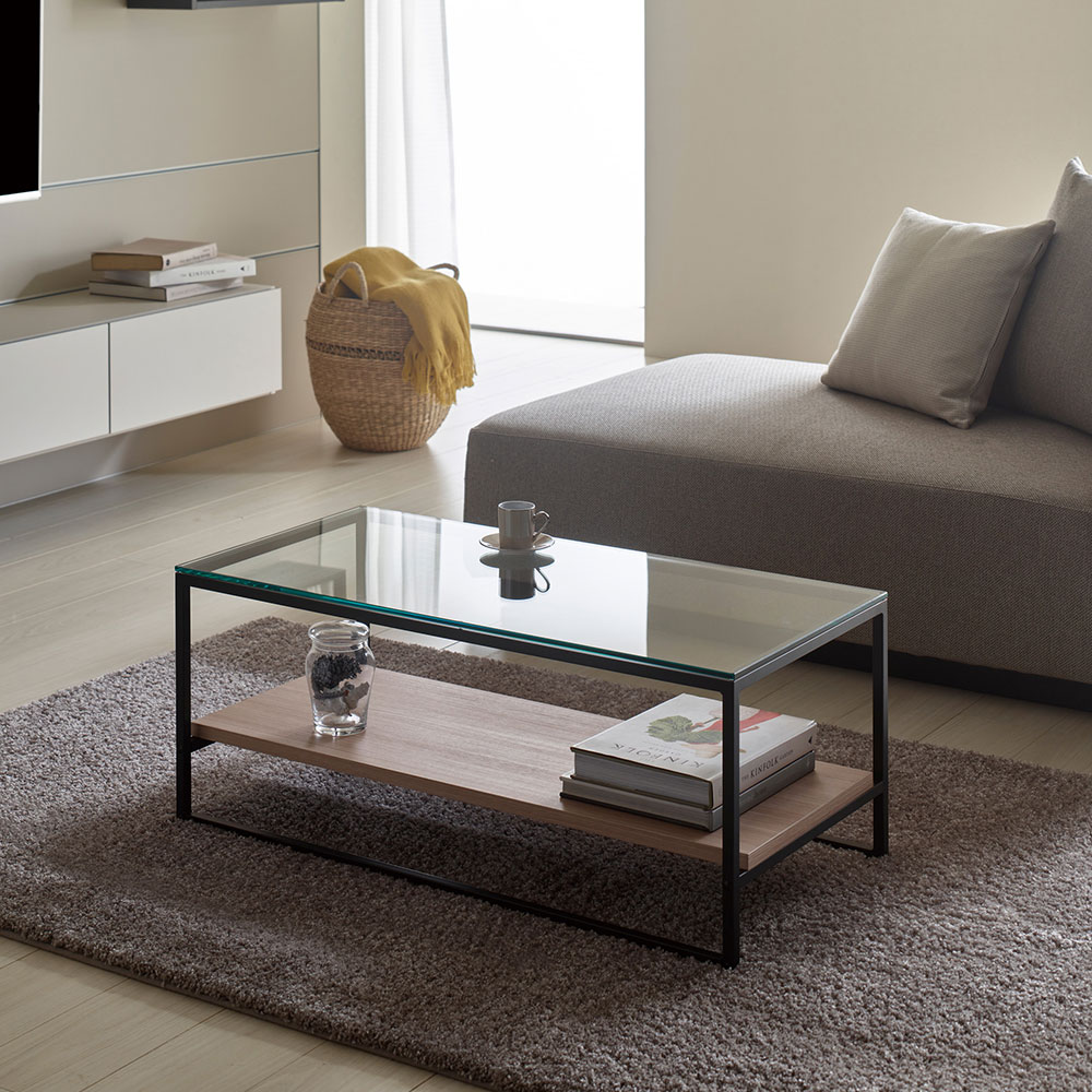 ガラス天板にスチールフレームのシンプルで、モダンな印象のリビングテーブルです。アクセントとなる棚板付きのデザインです。3色展開の棚板はパモウナの他シリーズのアイテムとカラーを揃えることができ、統一感のあるインテリアを可能にします。