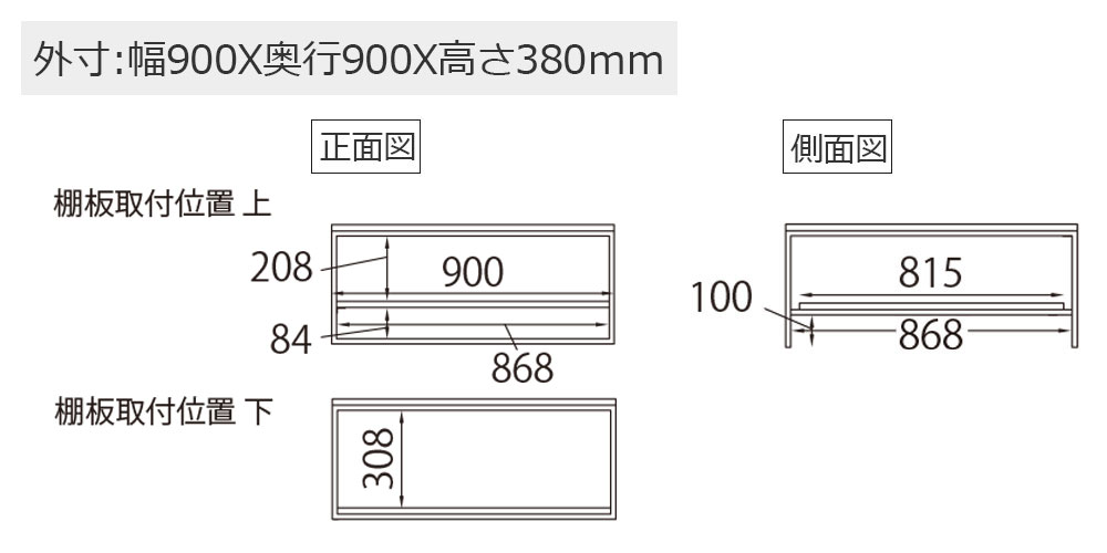 棚板は2段階で取り付け位置を調整することが出来ます。