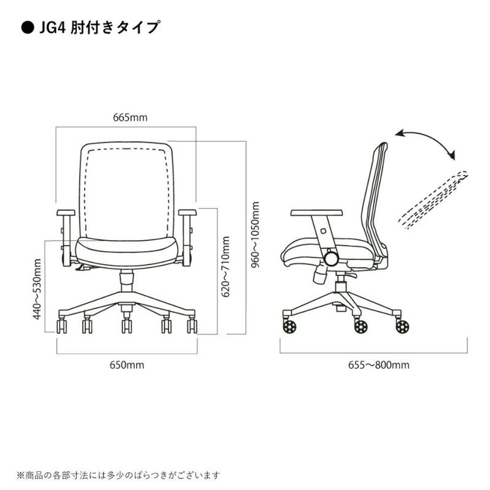 腰や背中に負担がかかりにくい構造と機能のJGシリーズ「JG4」肘付きタイプ