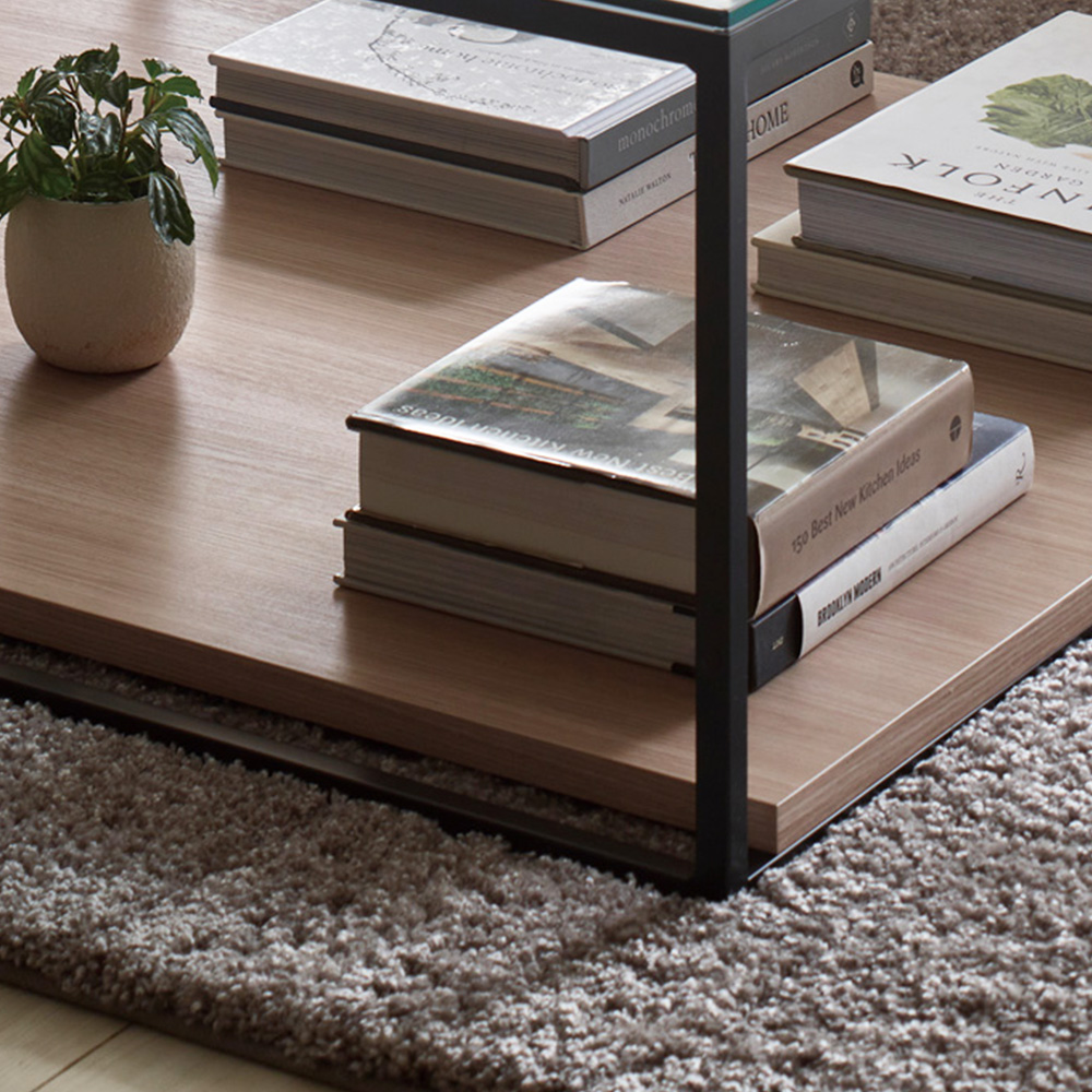 Pamouna(パモウナ)リビングテーブル「IR-W90T」天板グリジオーク色 幅90cm 奥行90cm 棚板全3色