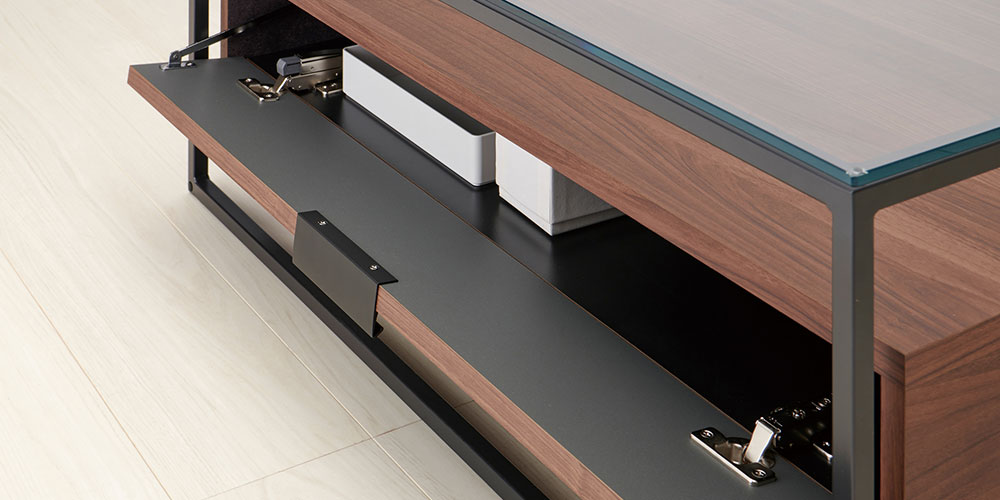 直線的でシンプルなデザインの収納付きリビングテーブル「IR-W90B」