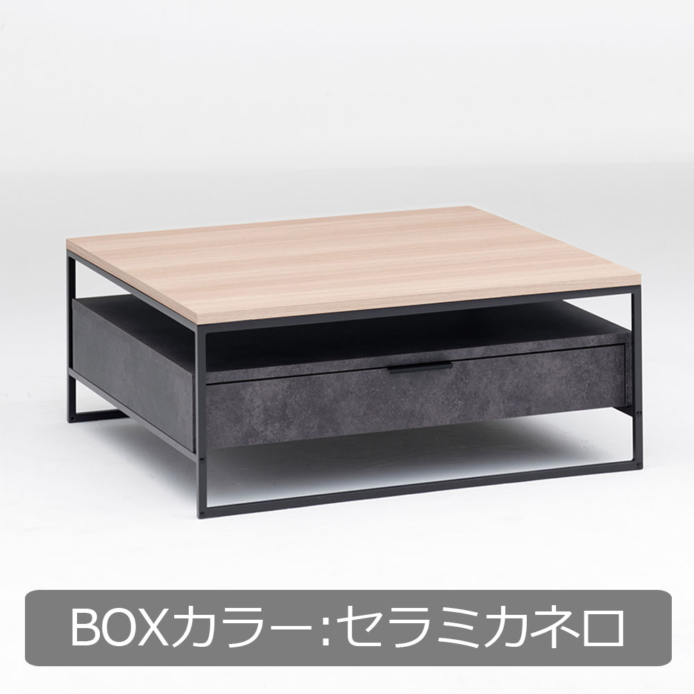 スチールの直線的なデザインが印象的な、存在感のある正方形のリビングテーブルです。収納に便利なBOX付タイプです。3色展開のカラーはパモウナの他シリーズのアイテムとカラーを揃えることもでき、統一感のあるリビングインテリアを可能にします。